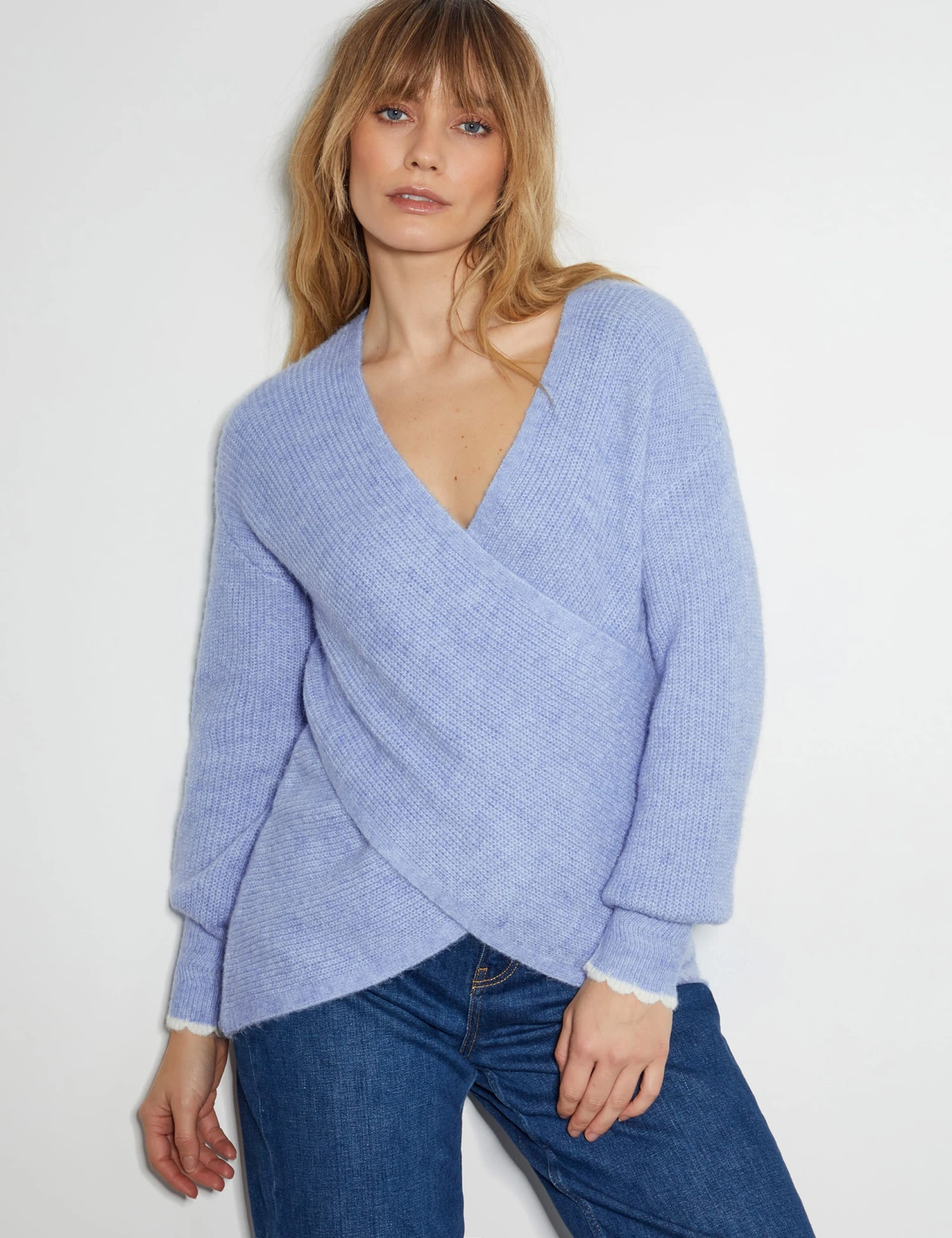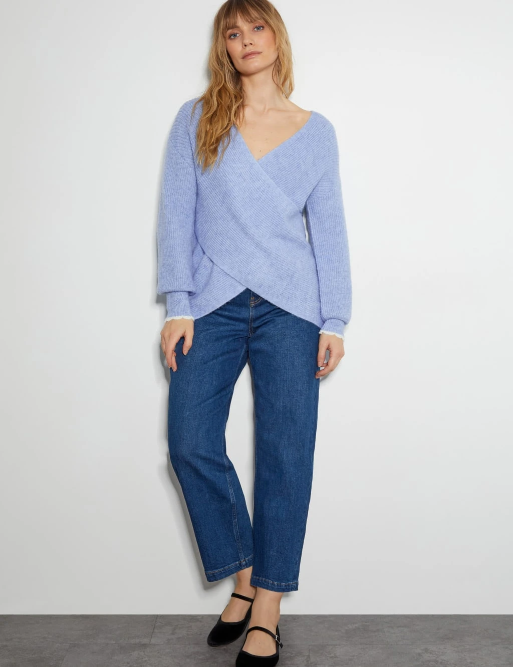 This textured Monsoon women’s knit jumper combines comfort with refined style. It’s designed in an easy regular fit, featuring a flattering mock-wrap front that creates a sophisticated silhouette. The feminine v-neck pullover design and dropped shoulders lend a laid-back feel, while ribbed and elasticated cuffs provide a sleek, tailored finish to this adaptable wardrobe essential.