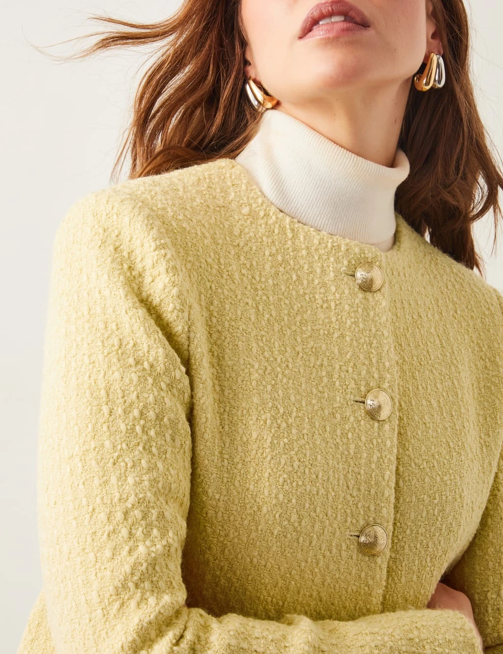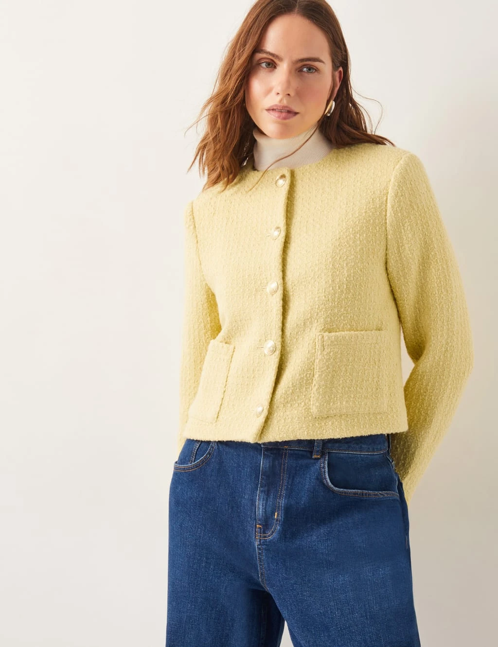 Add an extra layer to work and weekend outfits with this timeless tweed jacket by Monsoon. It’s cut in a regular fit from textured fabric with a touch of wool for warmth. The shacket-style design has a single-breasted front that gives it a neat appearance. A collarless neckline and metallic buttons offer a distinctive finish.