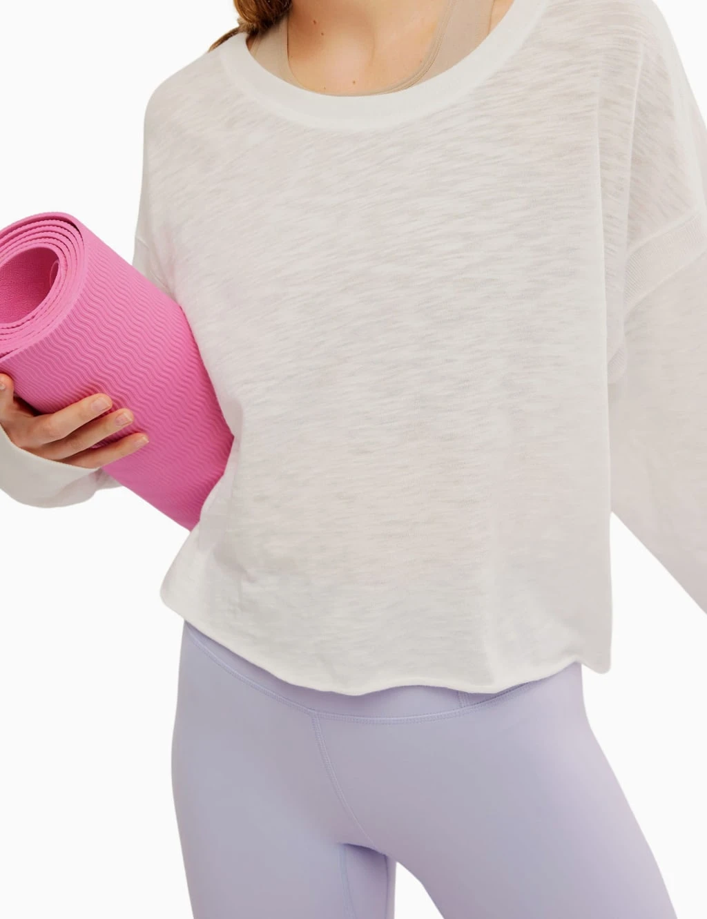 Add a lightweight layer to your gym ensemble with this cotton-rich top by FP Movement. It’s designed in a relaxed fit, with casual dropped shoulders on the long sleeves. This activewear piece is complete with a round neckline and a striking cutout detail at the back.