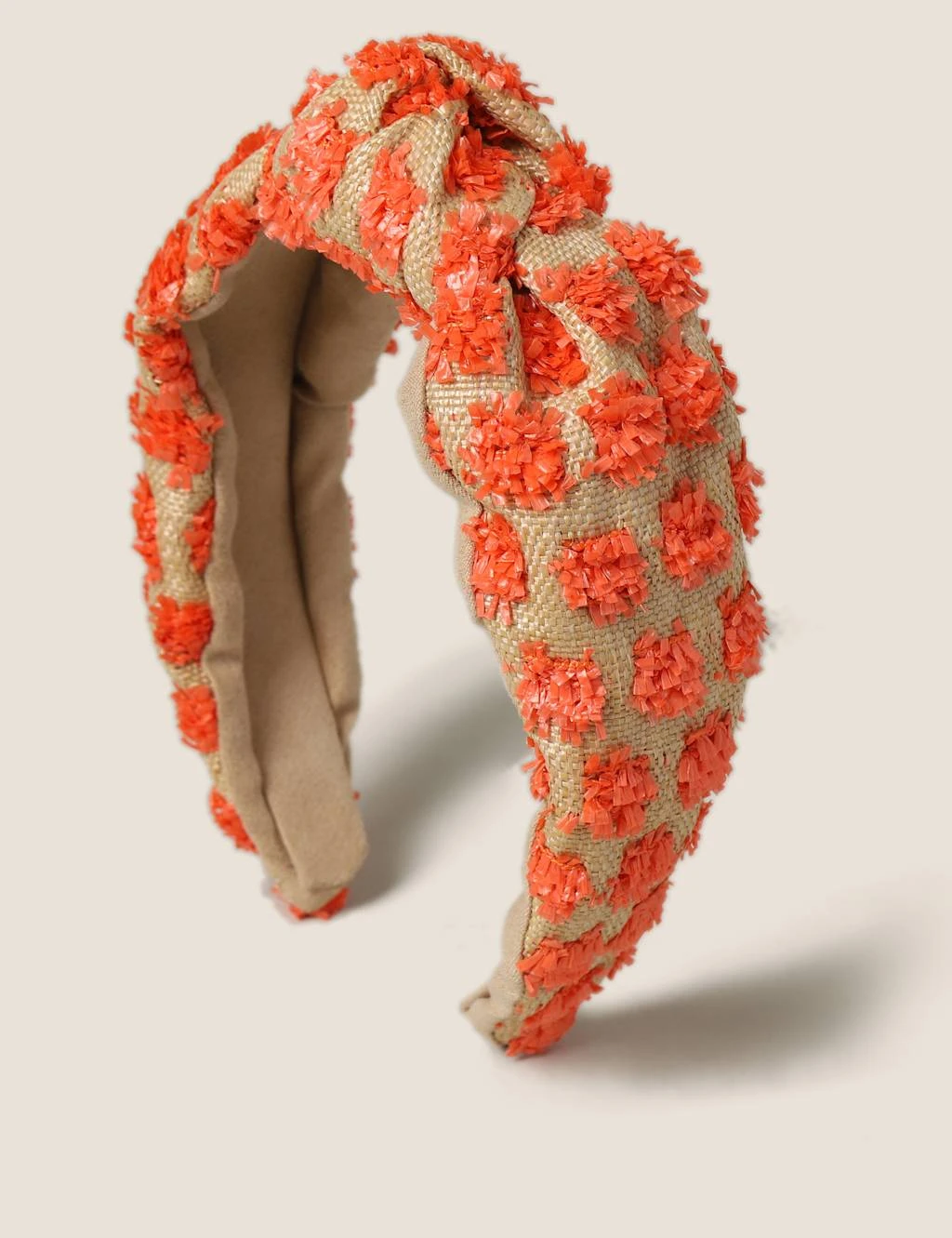 Add a pop of colour to your hair this summer with this orange raffia knot Alice band.