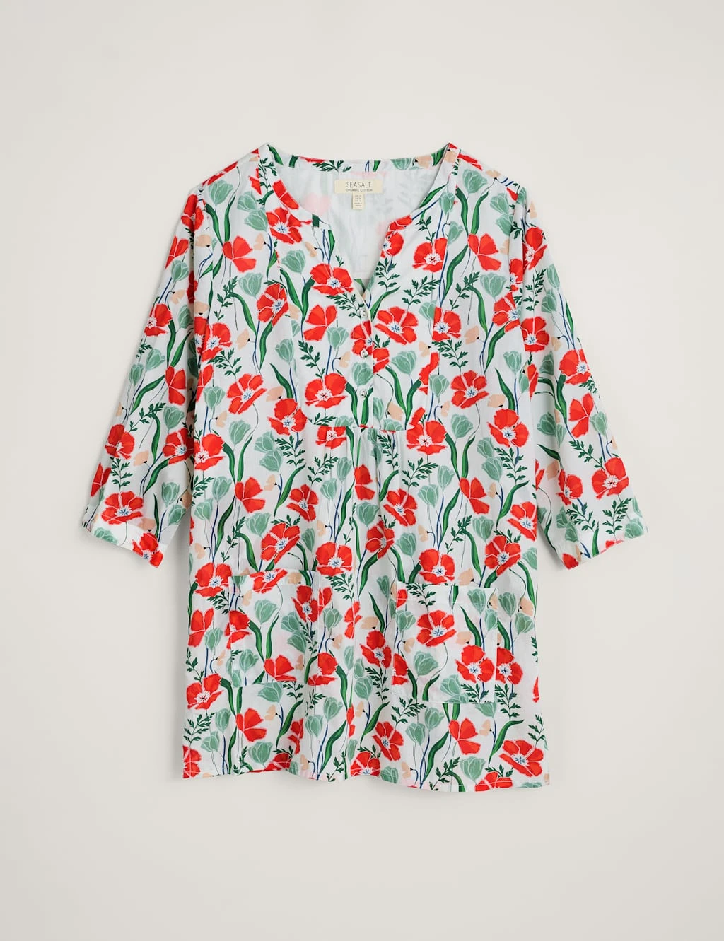 This organic cotton tunic by Seasalt Cornwall blooms with colourful poppies. It’s made to a relaxed fit for easy-wearing comfort, and features a neat notch neckline with button fastenings. Three-quarter sleeves and handy front patch pockets complete this stylish piece.