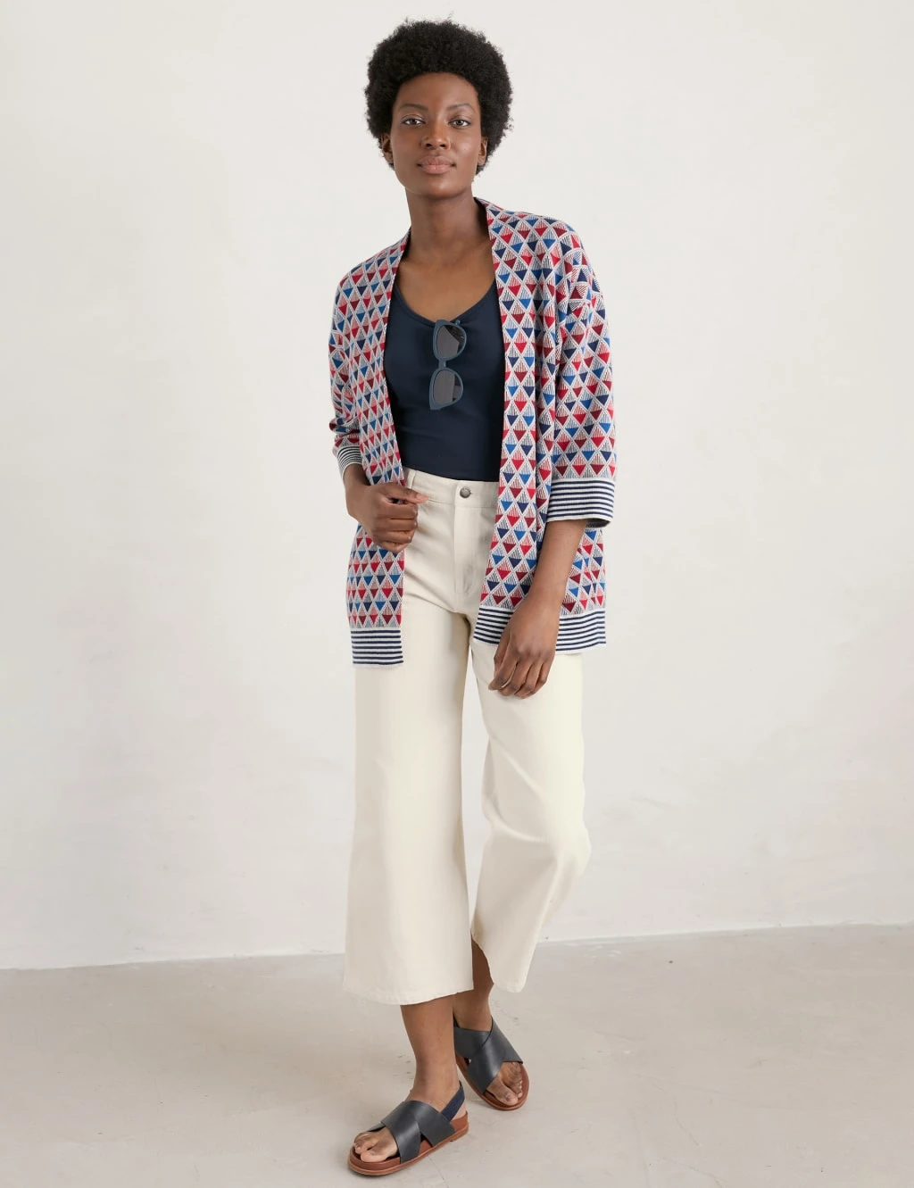 Add a bold touch to any look with this vibrant jacquard cardigan from Seasalt Cornwall, made from organic cotton. The regular-fitting piece has comfy three-quarter-length sleeves and an open-front design for a modern look. A mix of stripes and geometric patterns makes this piece instantly stand out.