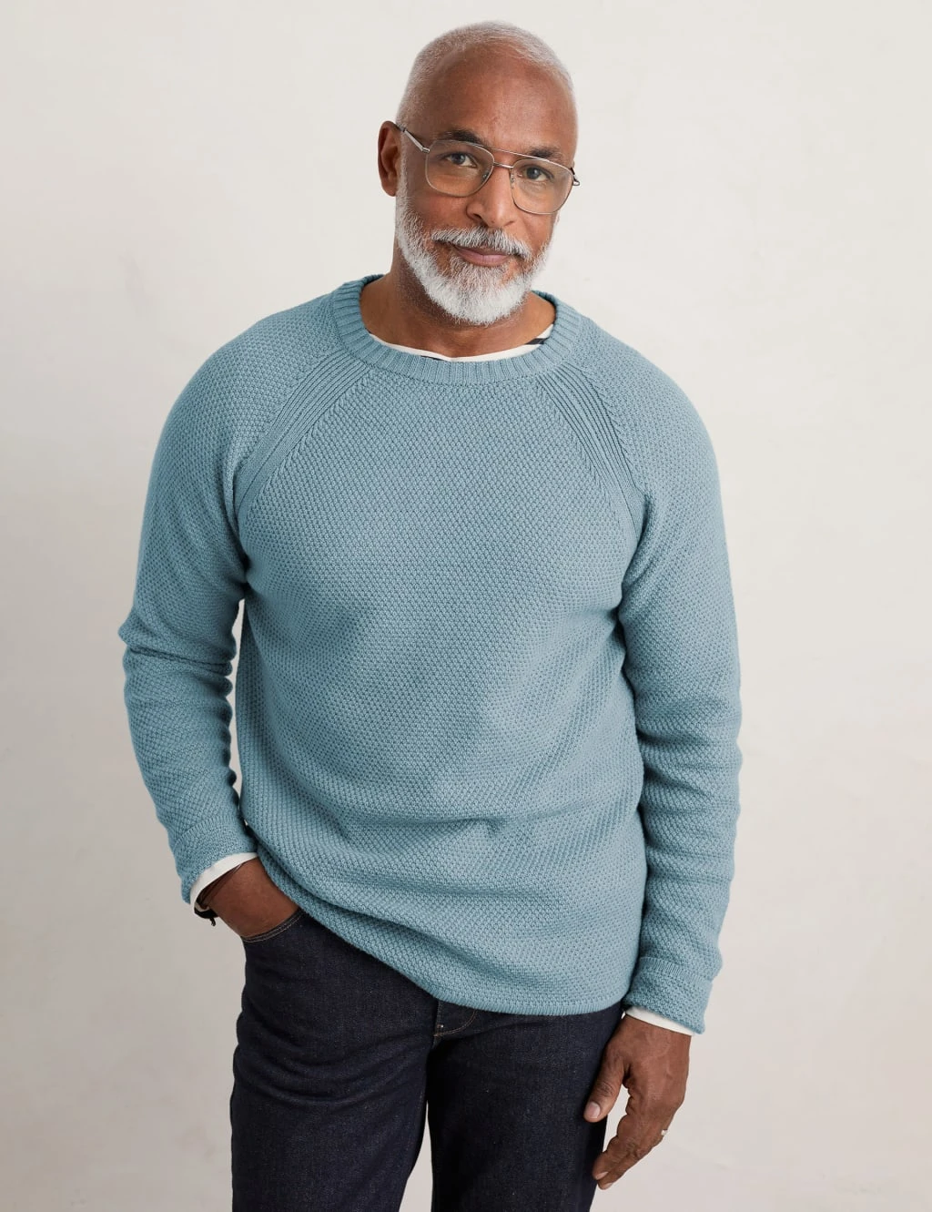 Stay snug in this pure organic cotton jumper from Seasalt Cornwall. It’s made in a comfy regular fit and features a classic crew neckline. The woven knit adds subtle texture, while chain stitching at the shoulders emphasises the laid-back shape of the raglan sleeves.