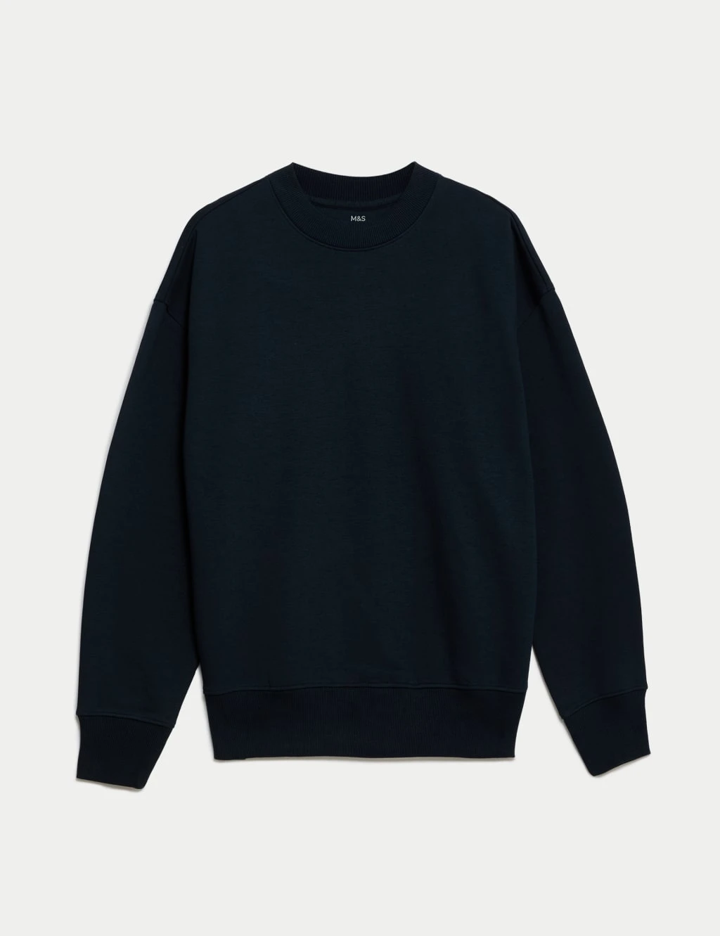 This cotton-rich sweatshirt makes a comfortable addition to your casual collection. Classic crew-neck style, cut to an easy oversized fit. Long sleeves with dropped shoulders add to the laid-back feel. Snug ribbed trims complete the design. M&S Collection: easy-to-wear wardrobe staples that combine classic and contemporary styles.