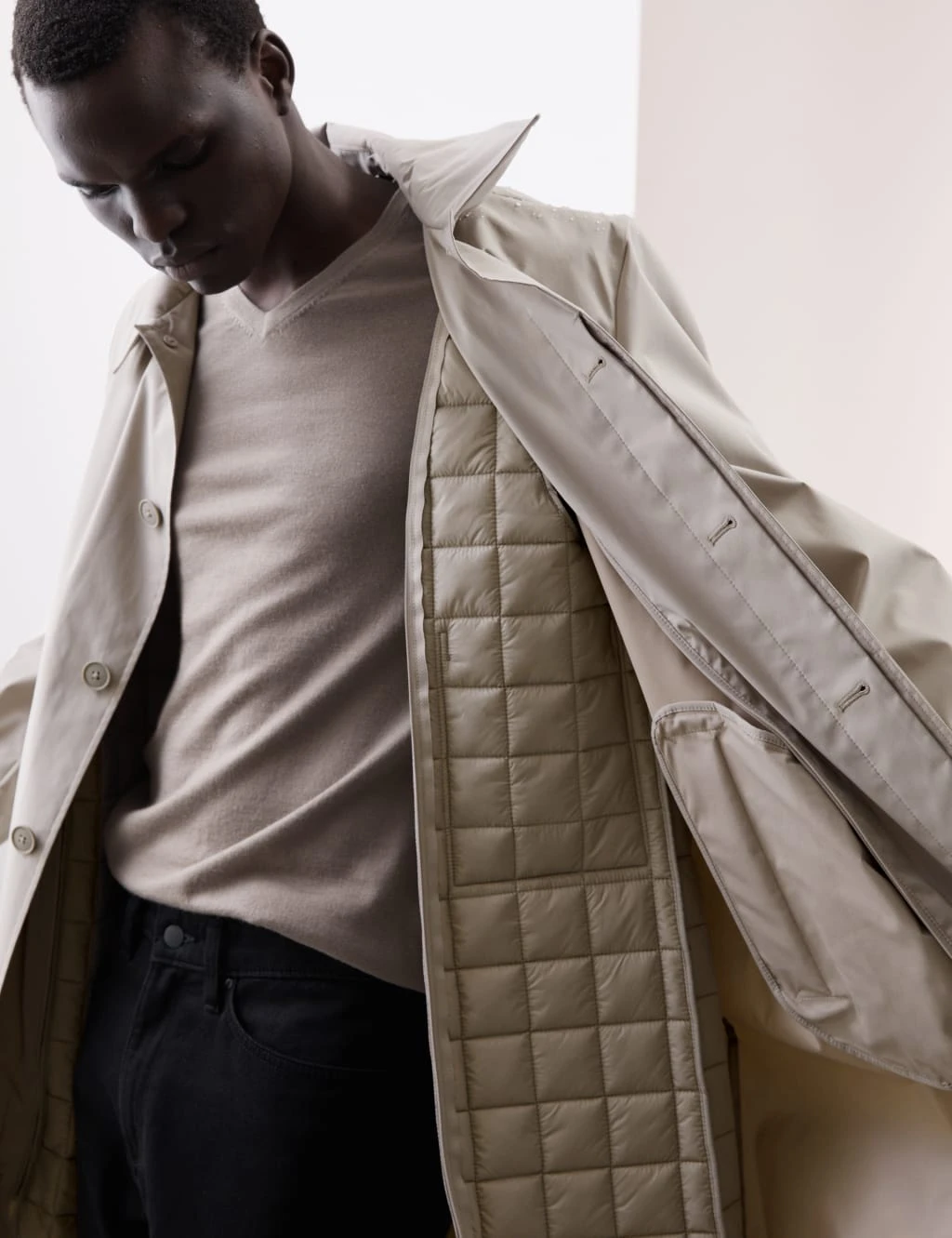 Smart and immaculately tailored, this collared mac from our Autograph collection is a sophisticated outerwear choice. It’s cut to an easy regular fit, at on-trend short length, and has a concealed button fastening to keep its outline neat. Light padding provides extra warmth and our water-repellent Stormwear™ finish ensures you stay dry during light rain showers. The easily removable quilted lining makes it suitable for year-round wear. Two jetted pockets are useful for storing your personal items. The hanging loop and cuff straps add refined finishing touches. Autograph: premium investment pieces featuring contemporary cuts and refined finishing touches.