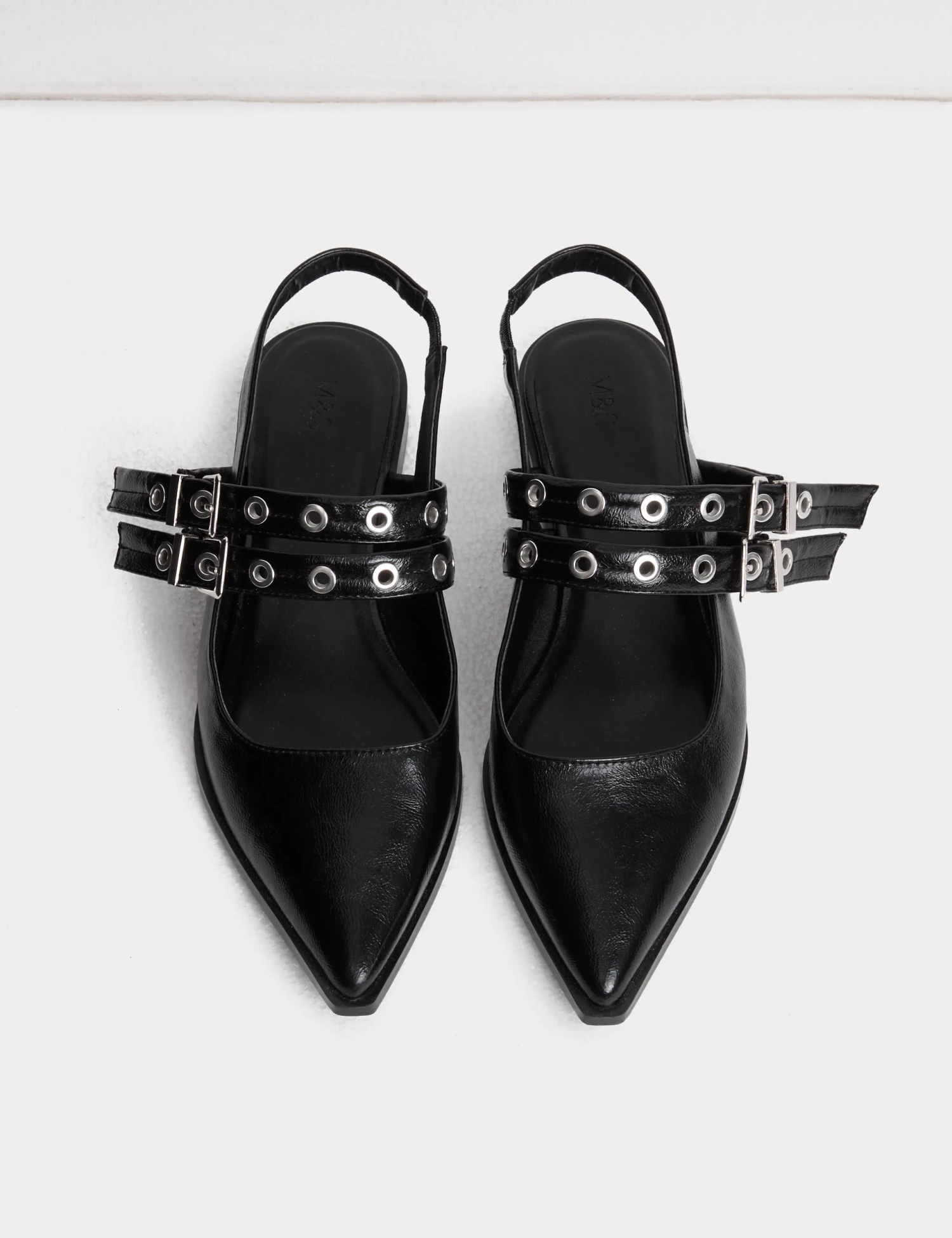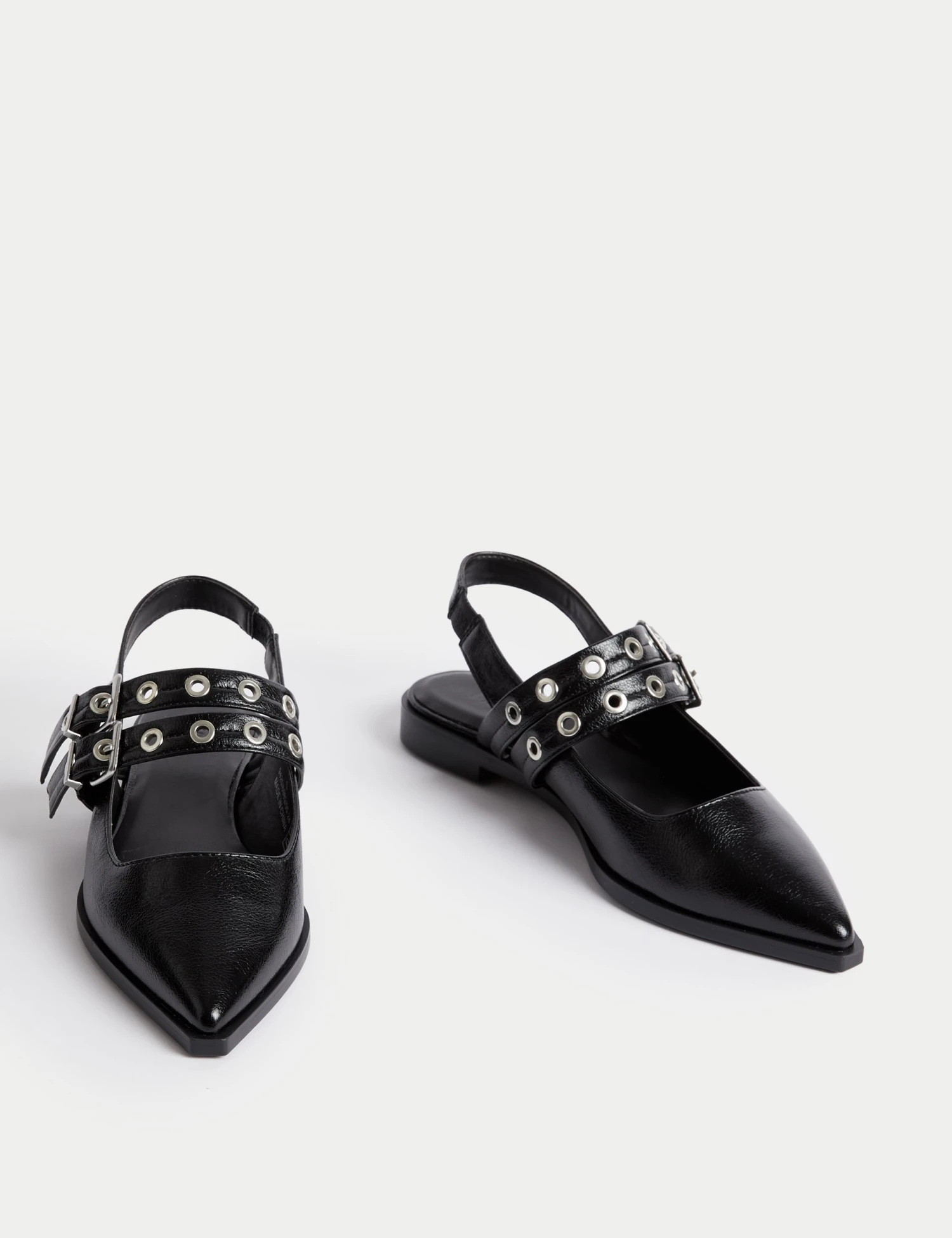 These patent slingback shoes will make a striking addition to your collection. Designed with double buckle straps and an elasticised back strap for comfort. Antibacterial padding gives added freshness. M&S Collection: easy-to-wear wardrobe staples that combine classic and contemporary styles.