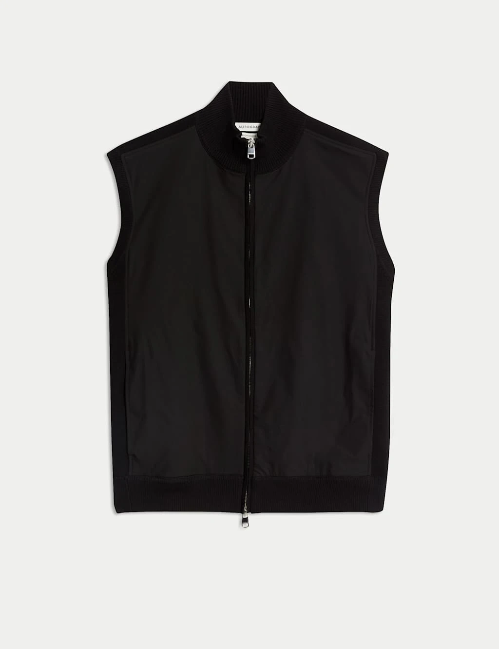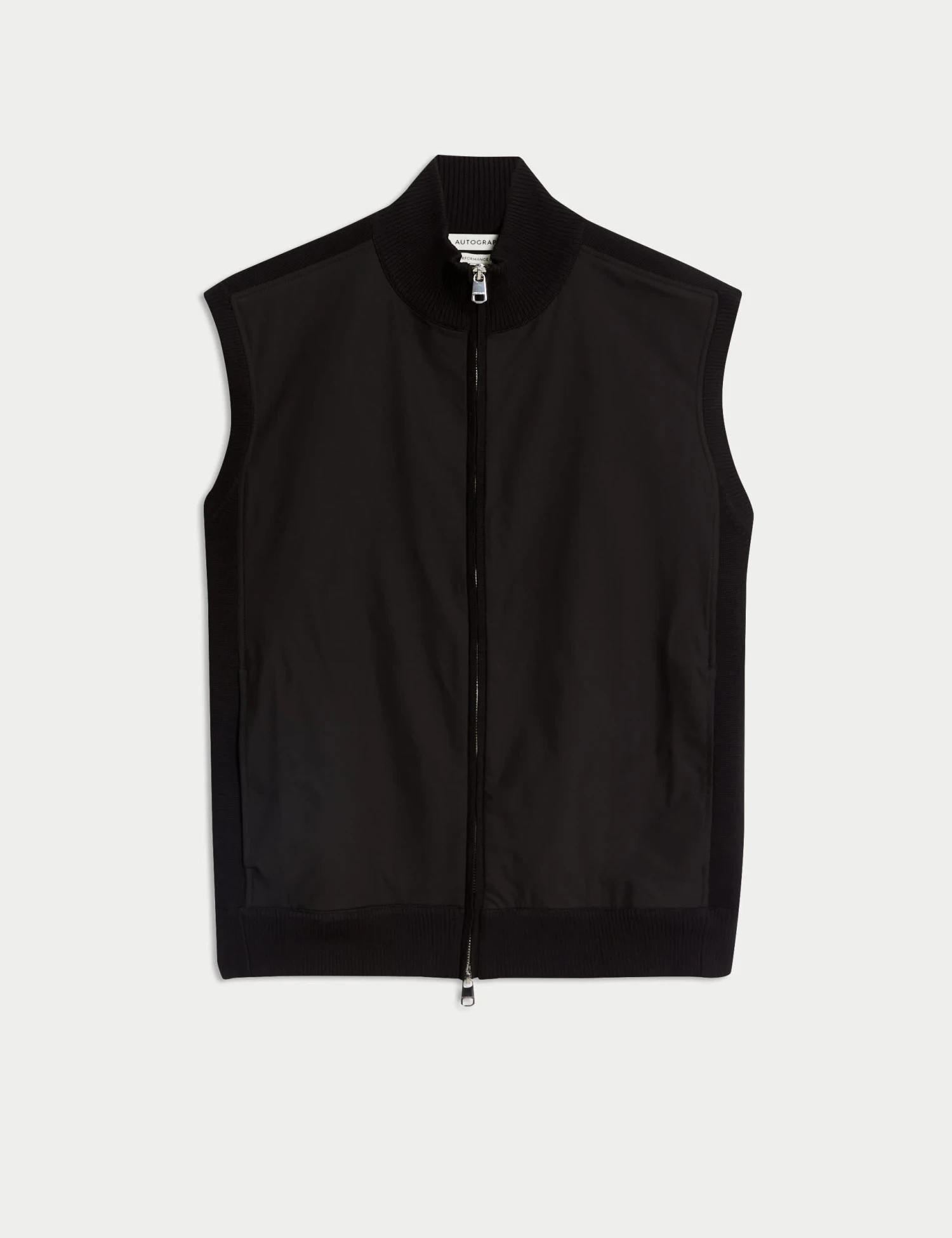 Treat yourself to an outer layer of luxurious warmth with this Performance gilet from our Autograph collection. It’s designed with a skilfully woven front panel and a premium Milano-knit back for a structured feel. The funnel neck trape heat, and the polished metal zip keeps this cold-weather essential securely closed against the elements while offering a choice of styling options.. Autograph: premium investment pieces featuring contemporary cuts and refined finishing touches.