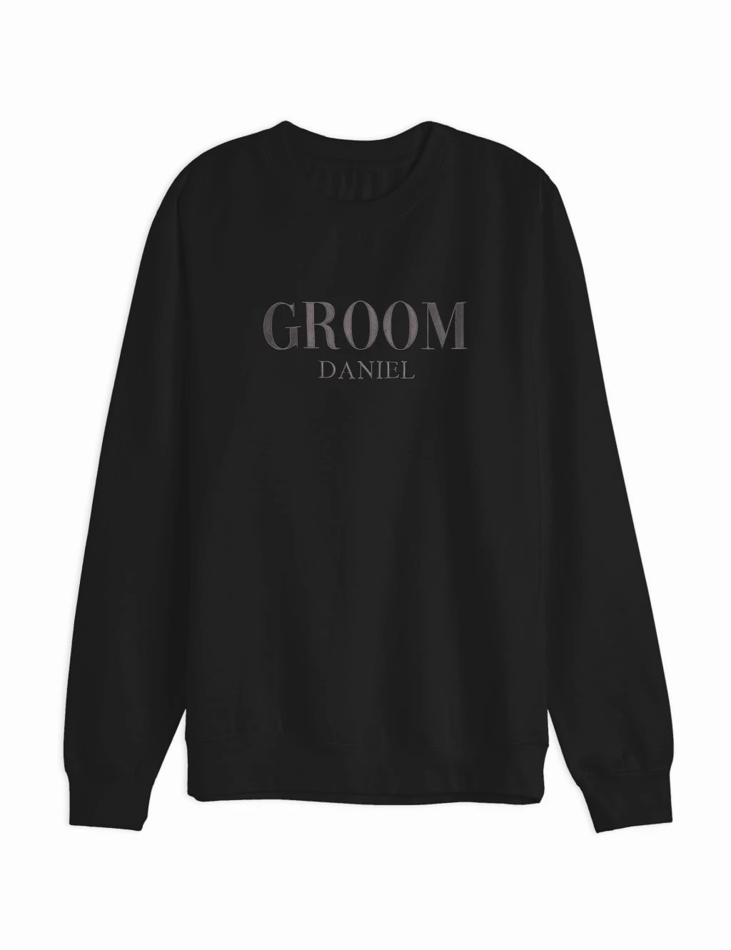 The perfect Sweatshirt for a Groom to be Personalise with their name to make it extra special.