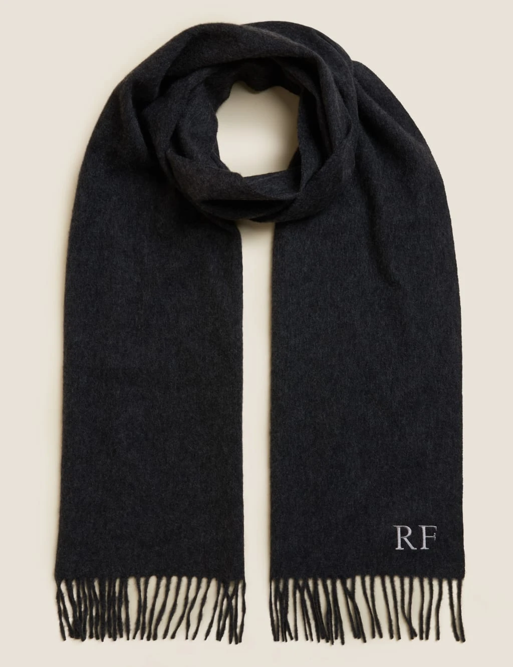 This luxe cashmere scarf from the Autograph collection can be personalised, making a thoughtful gift for the festive season. The recipient’s initials will be embroidered in grey thread. This piece is crafted from yarn spun in Inner Mongolia, ensuring supreme quality and cosiness. Fringed trims at each end add subtle detailing.