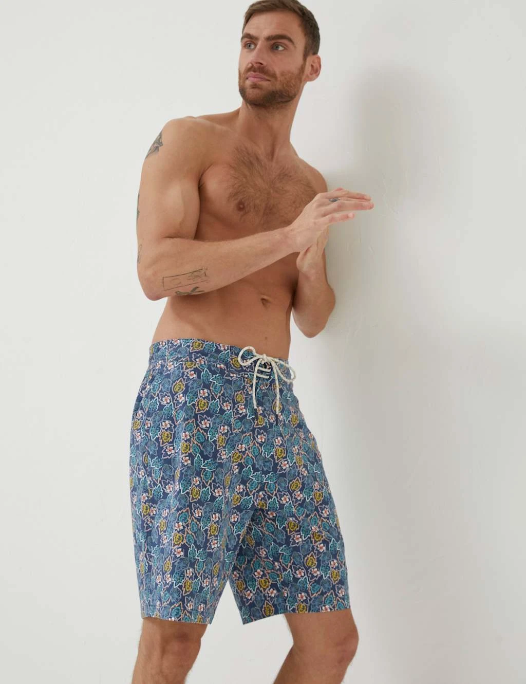 With their pineapple print, these cotton-blend knee-length swim shorts from FatFace will ensure you look effortlessly cool on the beach. They’re made to a regular fit, with a comfortable lining and an elasticated drawstring waistband. Pockets at the sides and back offer a practical finishing touch.