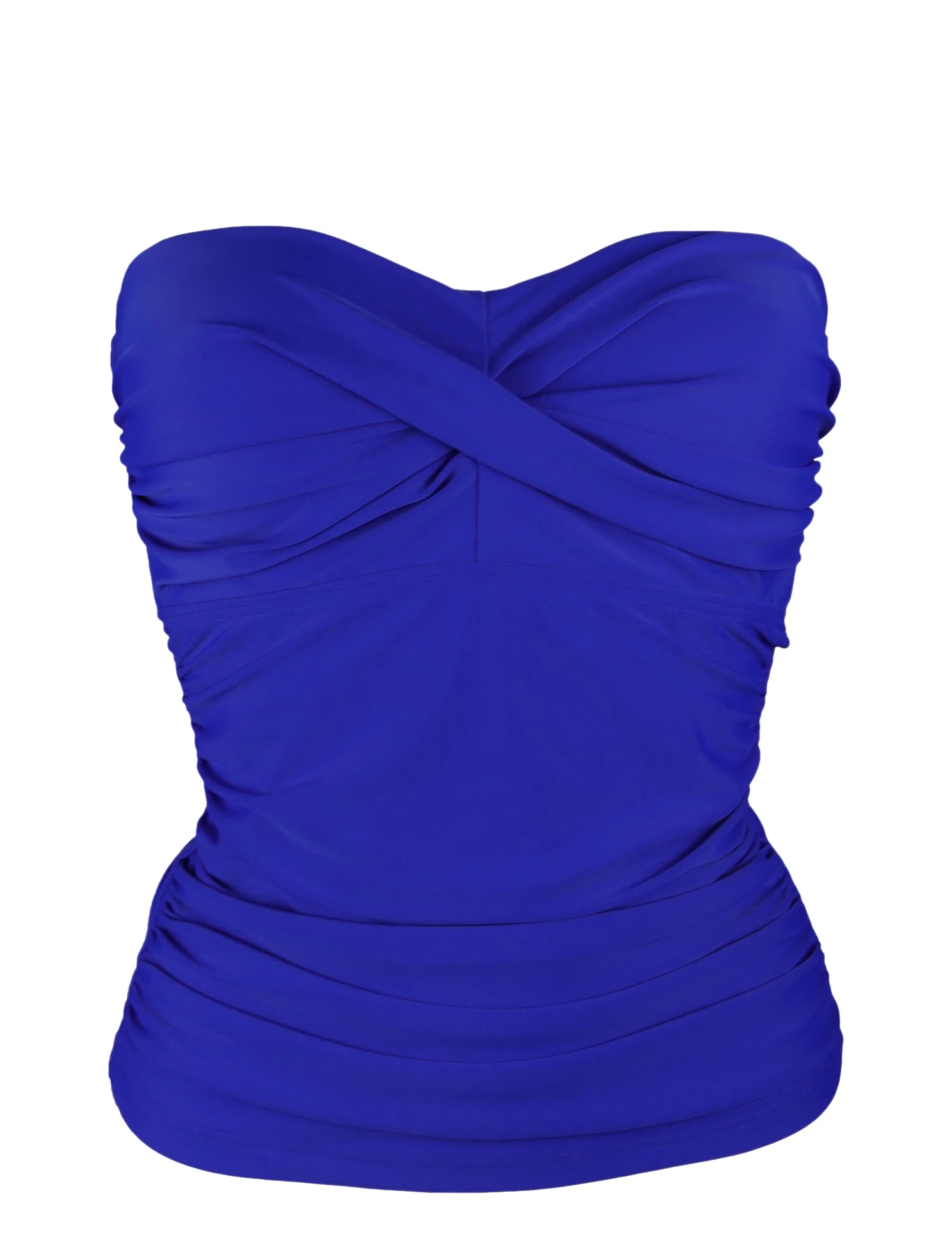 Add a splash of colour to your swimwear collection with this eye-catching tankini top by Pour Moi. Designed for the fuller bust, the non-padded, non-wired piece, features secret shelf support and removable shoulder straps at the bandeau neckline. A twist detail and ruching add flattering style.