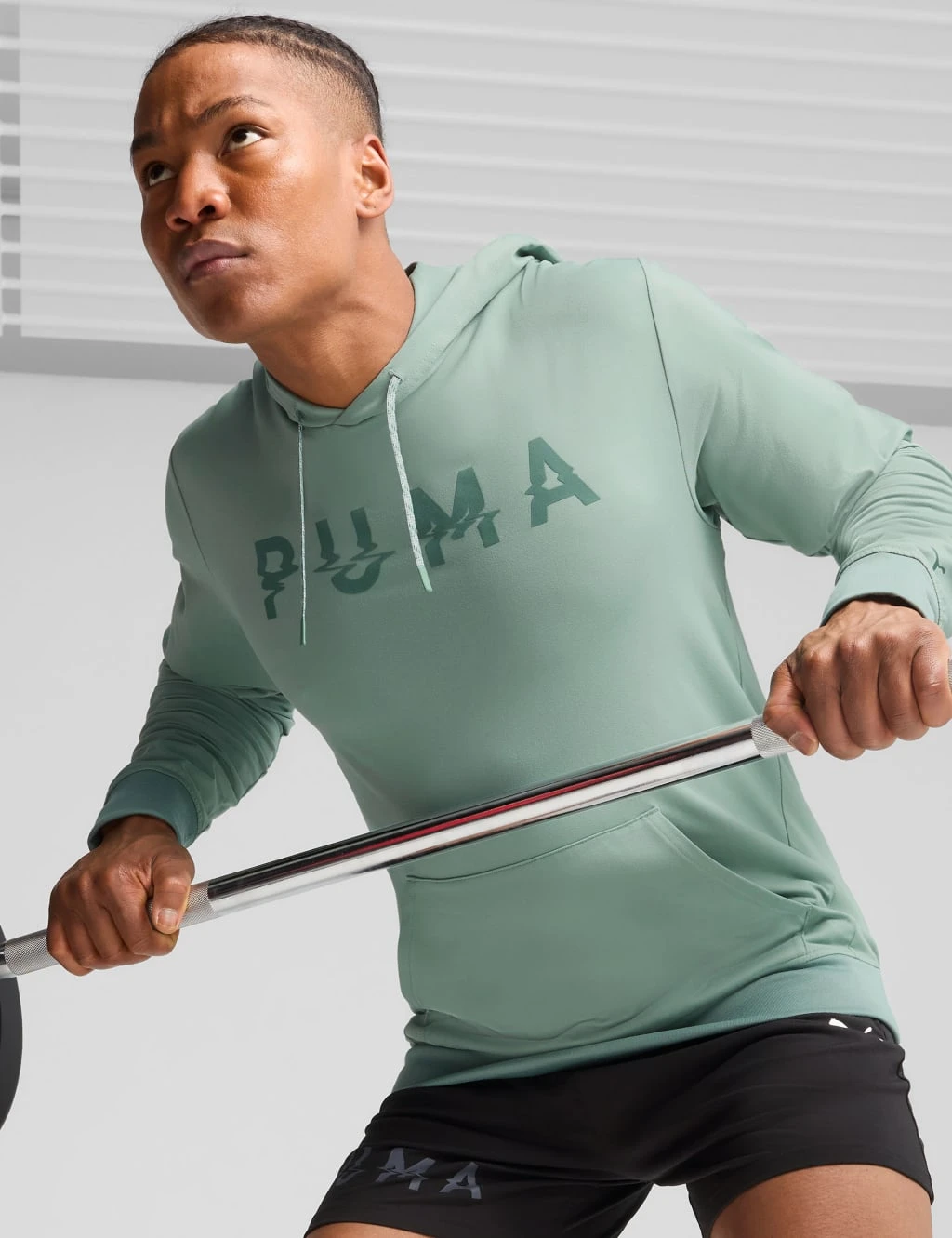 Whether you’re warming up, cooling down or simply pushing through, this hoodie from Puma is a practical layering piece. This overhead style is cut in a comfy regular fit, with a handy kangaroo pocket. The brand’s Cloudspun fabric provides a similar handfeel to ultra-soft cotton, while moisture-wicking dryCELL technology offers lasting comfort. Branding on the chest adds a premium finishing touch.
