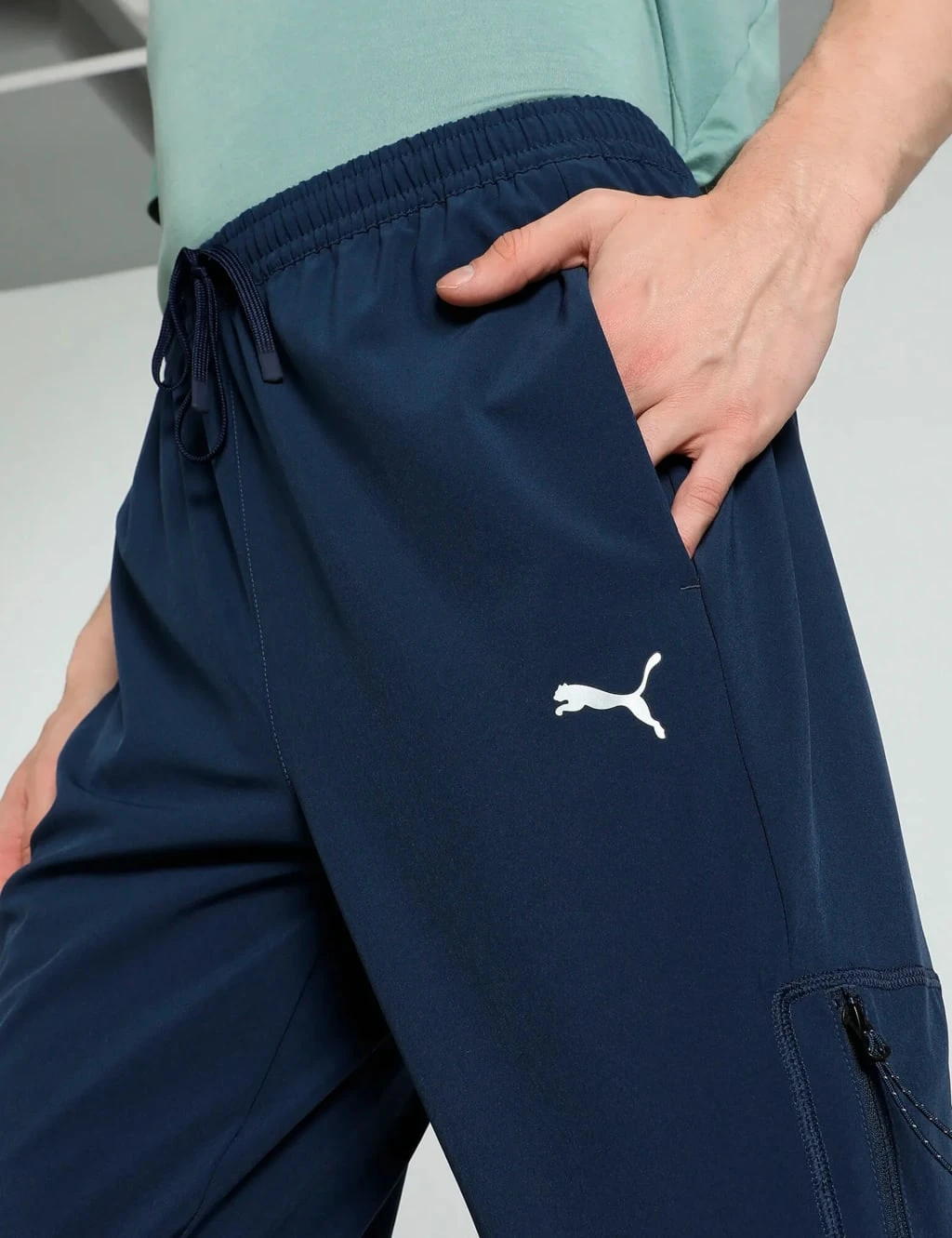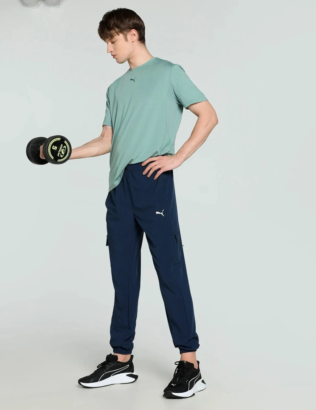 These Puma joggers perform for both the gym and off-duty styling. For a modern silhouette, they’re made in an easy regular fit with an elasticated drawcord waist and a cuffed, tapered leg. The woven fabric features dryCELL technology for comfort as you move, while the side pockets and cargo pocket are practical finishing details.