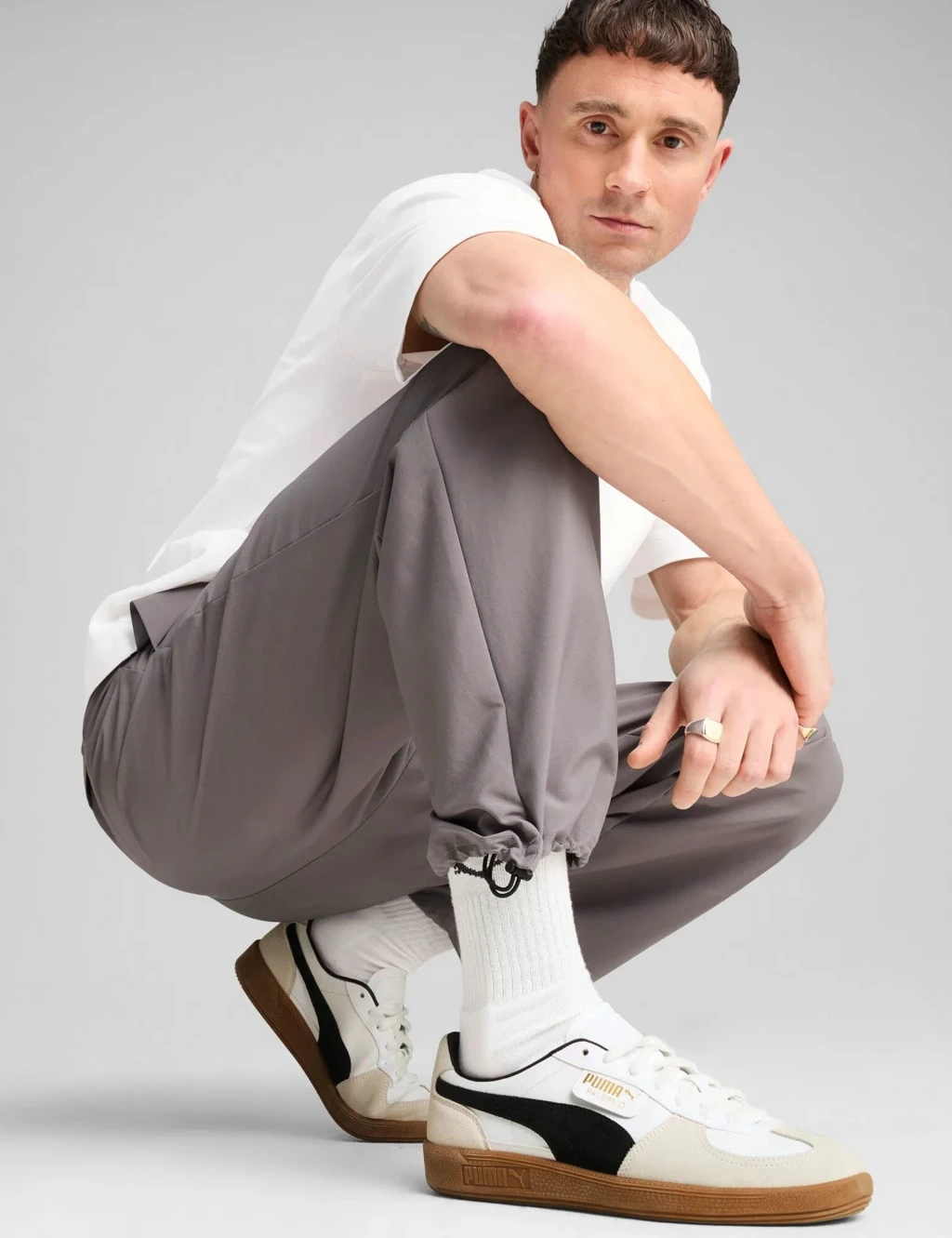 These Puma joggers combine laid-back styling with a sporty edge. They have a contemporary regular fit with bungee cord cuffs for an adjustable shape through the leg. An elasticated waistband adds extra flexibility and comfort. The look is complete with iconic branding and essential pockets on the side.