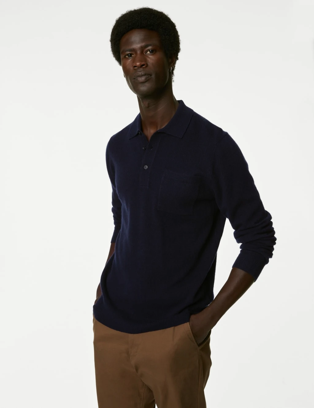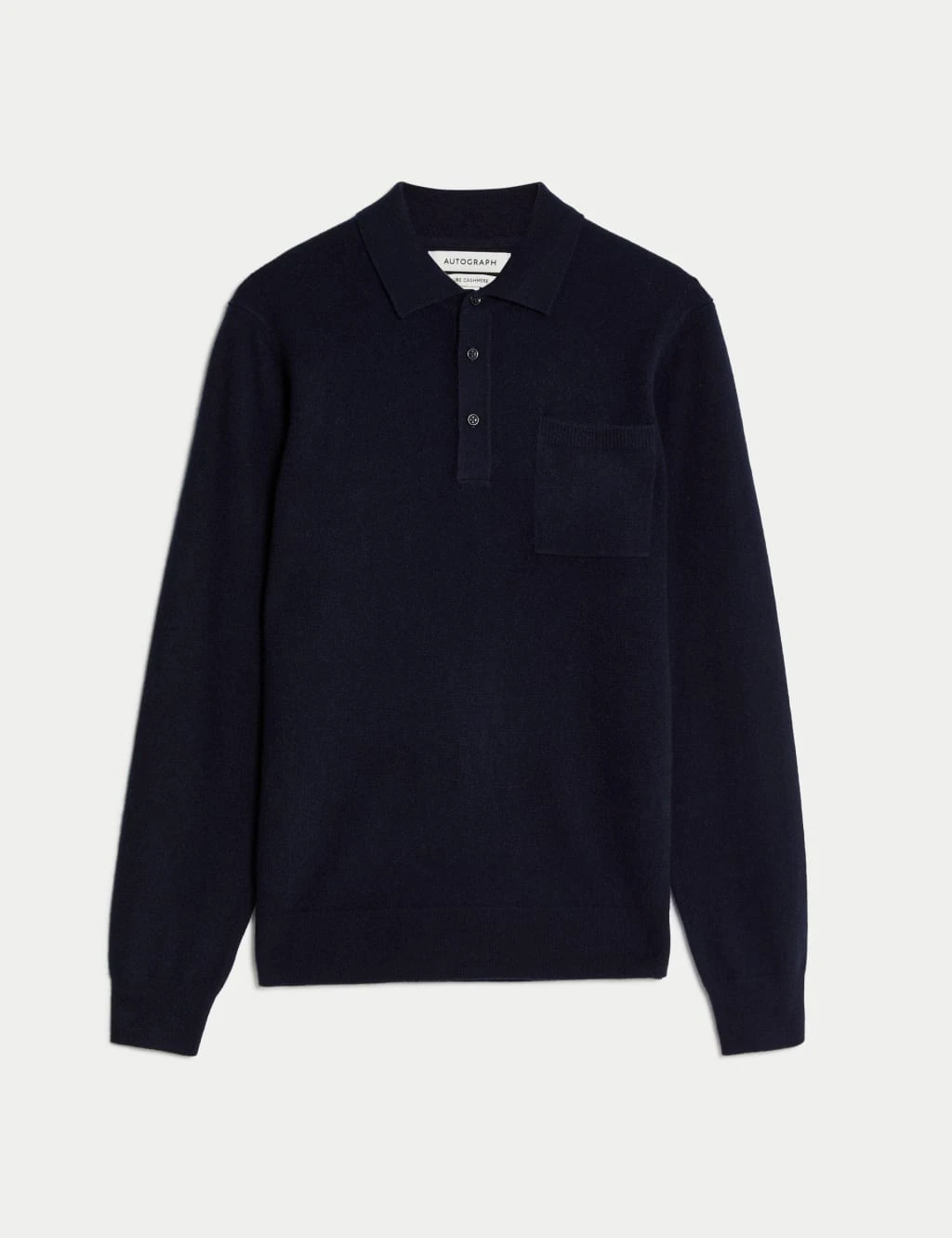 Elevate your everyday looks with this luxurious pure cashmere polo shirt from our Autograph collection. The knitted design features a classic collared neck and ribbed trims for extra warmth. This piece is finished with a button fastening and neat chest pocket detail.