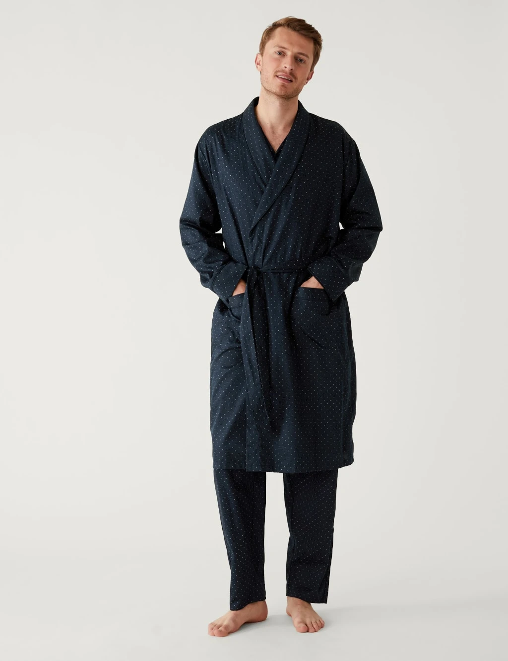 Go for a classically stylish nightwear option with this polka dot dressing gown. It features a tie belt fastening and is made from pure cotton with Stay Soft technology, with means it keeps its soft feel wash after wash. We only ever use responsibly sourced cotton for our clothes.