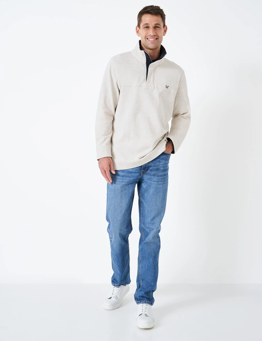 This pure cotton sweatshirt from Crew Clothing makes layering simple. It’s designed in an easy regular fit, with a cosy zipped funnel neckline. The piece has been specially washed to give it an extra-soft feel and is finished with the brand’s crossed-oars logo embroidered on the chest for a signature touch.
