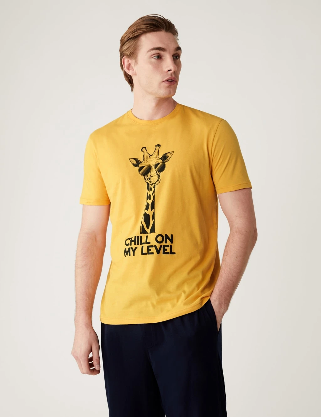 Give your loungewear a playful spin with this pure cotton slogan top. Comfy regular fit with casual short sleeves. Fun giraffe print complete with a cheeky ‘chill on my level’ message underneath. M&S Collection: easy-to-wear wardrobe staples that combine classic and contemporary styles.