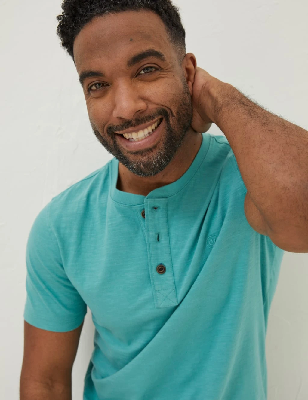 Make everyday dressing effortless with this pure cotton t-shirt from FatFace. The short-sleeved style is cut to a regular fit from casual slub fabric. It features a buttoned baseball neckline that you can adjust to suit your style.
