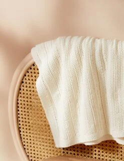 This pure cotton shawl would make a wonderful gift for new parents. A cellular stitch gives this soft style a traditional feel that’ll look great in baby’s nursery. We only ever use responsibly sourced cotton for our clothes.