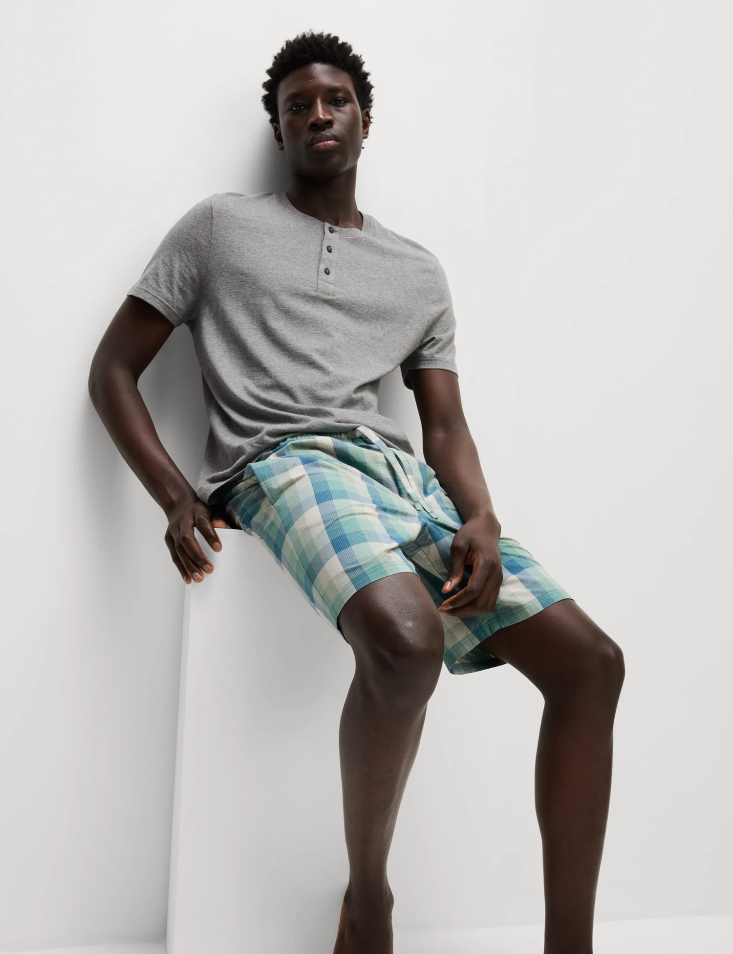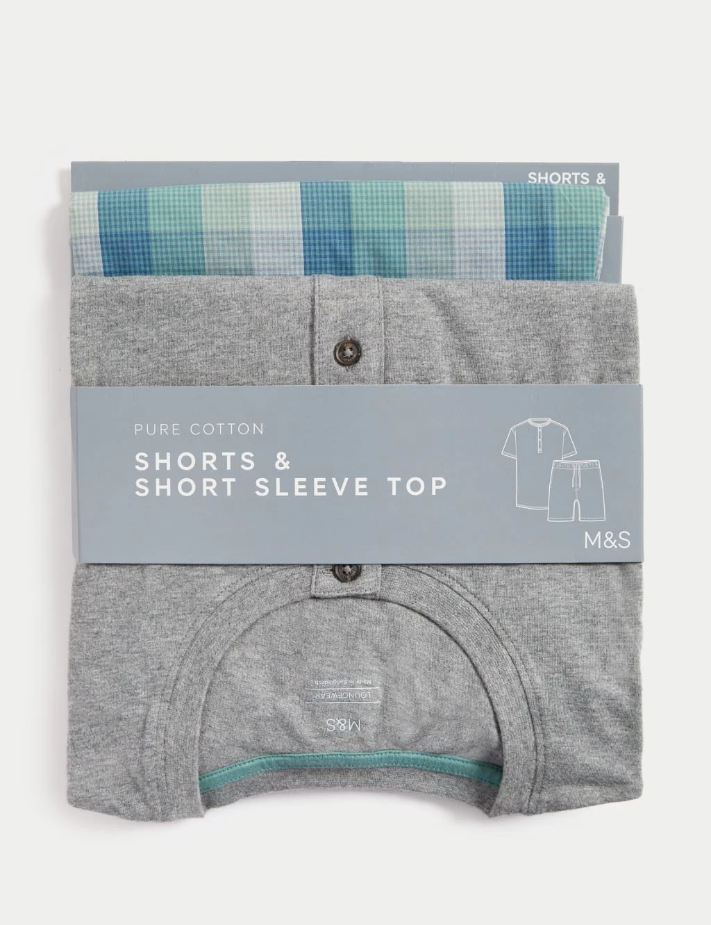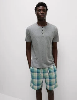 Sleep in style with this pure cotton pyjama set. Comprises ombre checked shorts and a short-sleeved Henley top, both in a comfy regular fit. The shorts have a drawstring covered elasticated waist, plus handy side pockets. M&S Collection: easy-to-wear wardrobe staples that combine classic and contemporary styles.