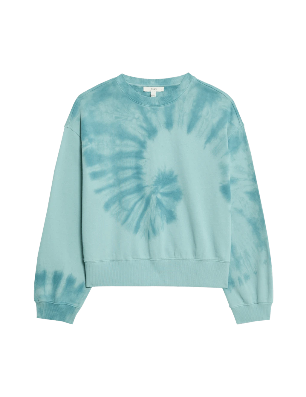 Elevate your casual wardrobe with this pure cotton ombre sweatshirt. It’s cut in a regular fit with a cropped length for a modern, laid-back look. The all-over tie-dye print adds a bold twist to the classic crew neck design. M&S Collection: easy-to-wear wardrobe staples that combine classic and contemporary styles.