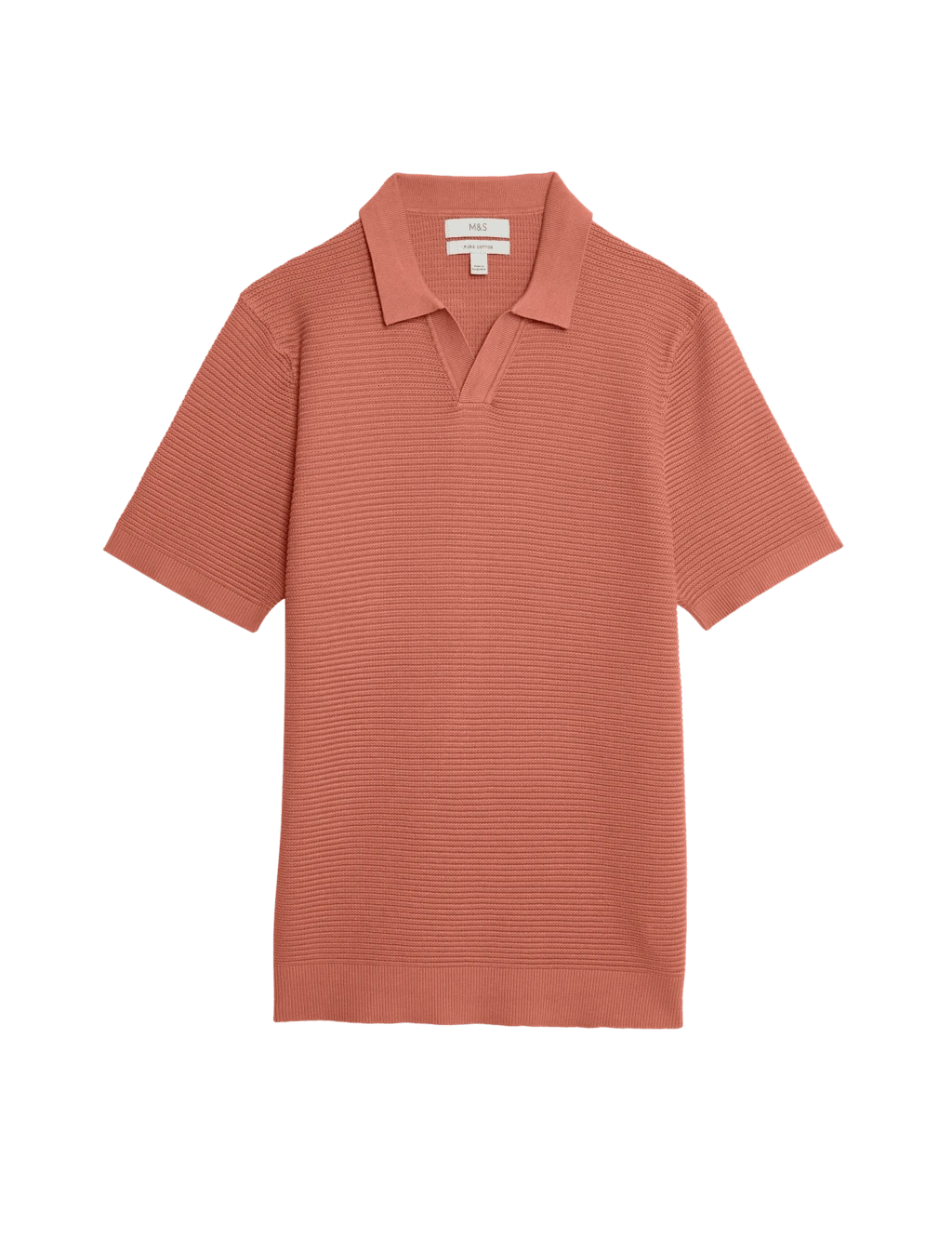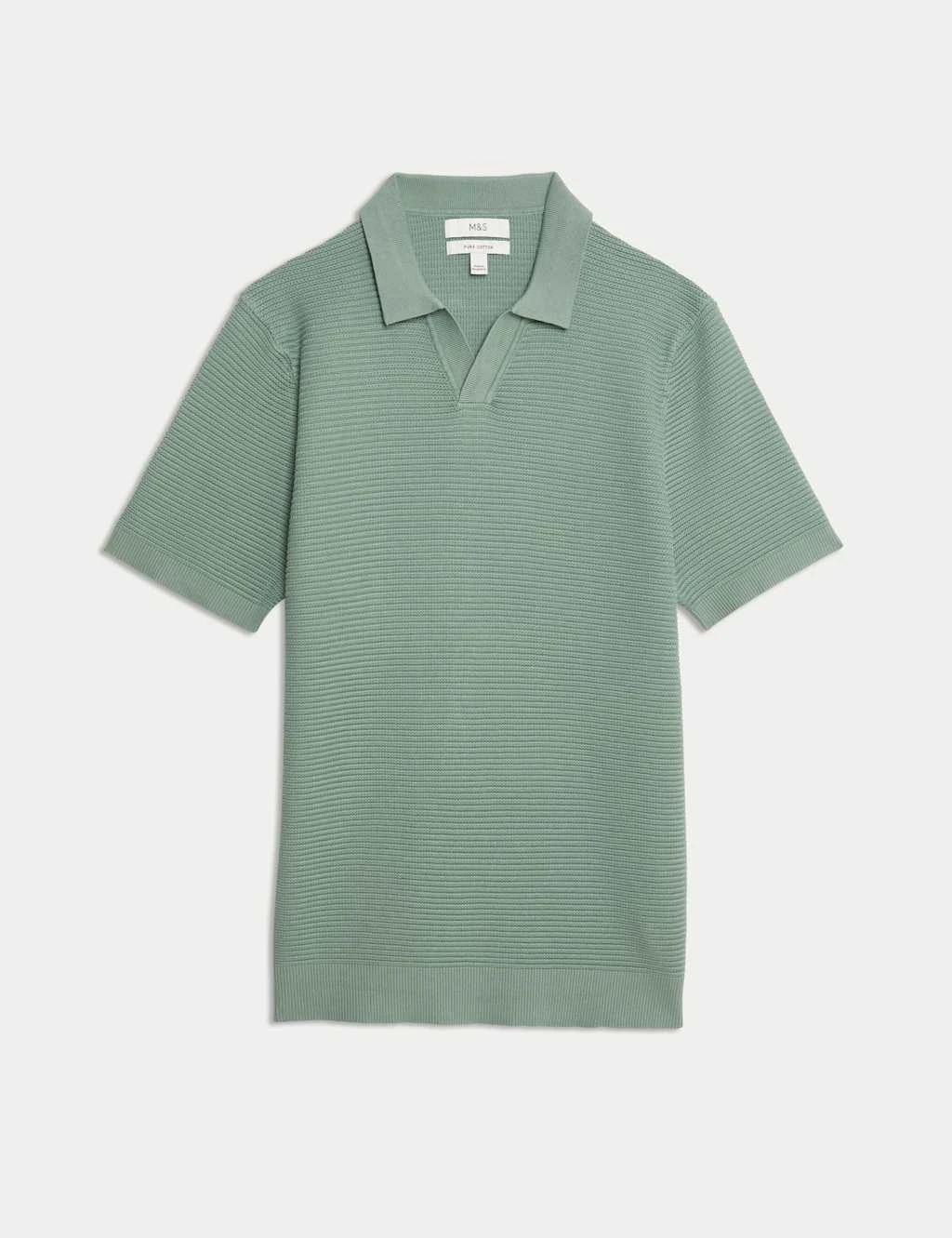 With its on-trend open neck, this knitted polo shirt looks cool and casual. It’s made from pure cotton for softness and breathability. The textured weave and garment dyed fabric enhances its rich colour and gives it a lived-in look. The ribbed trims fit snugly. M&S Collection: easy-to-wear wardrobe staples that combine classic and contemporary styles.