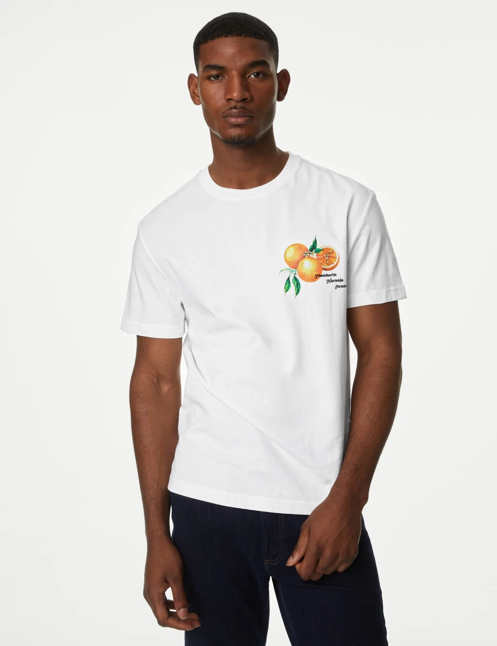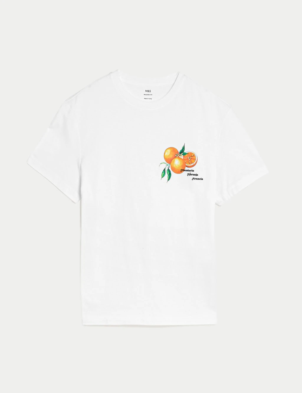 Freshen up your casual wardrobe in a jiffy with this eye-catching mid-weight pure cotton t-shirt. Comfy relaxed fit with a classic crew neck. Brightly coloured graphic hangs above words that mean ‘orange’ in three different languages. M&S Collection: easy-to-wear wardrobe staples that combine classic and contemporary styles.