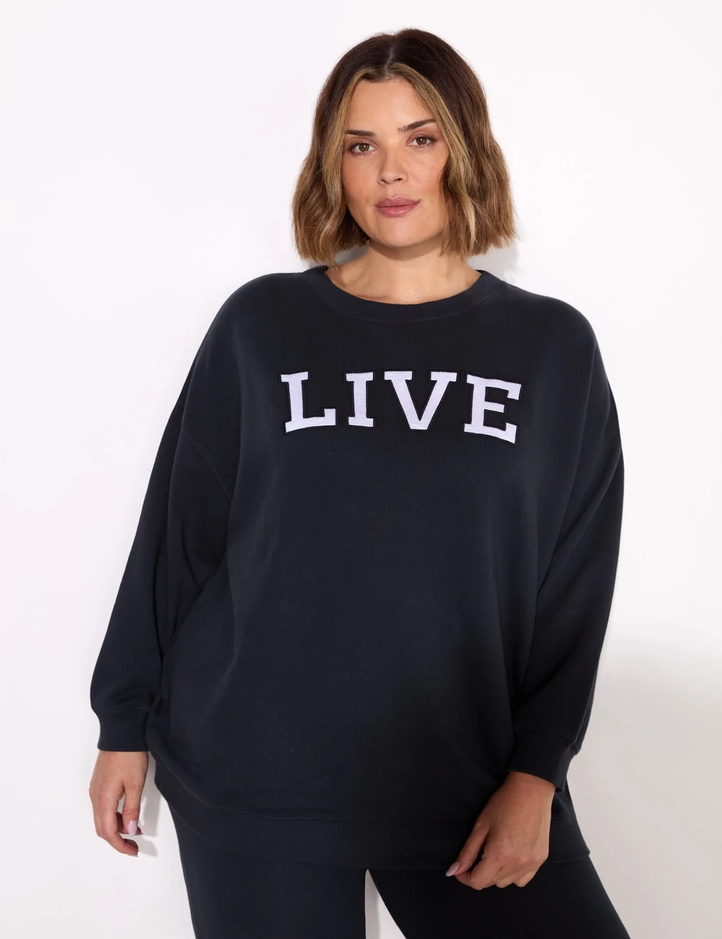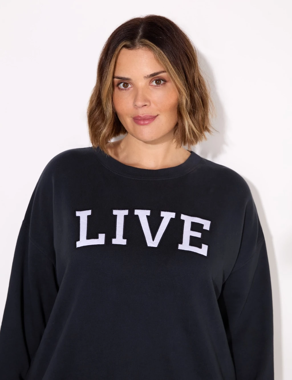 Pull on this pure cotton sweatshirt by Live Unlimited London for an effortlessly stylish look. It’s made in a flattering oversized fit with a neat round neckline. A slogan reading ‘LIVE’ is embroidered in contrasting thread across the chest for a bold touch.