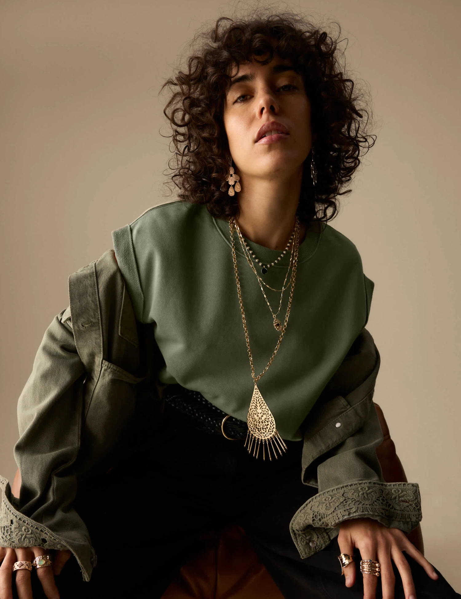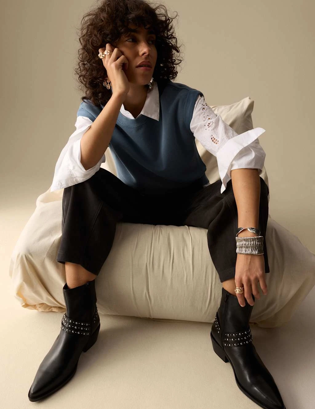 This Per Una sweatshirt is a versatile addition to your casual wardrobe. It’s crafted in a comfortable oversized fit from pure cotton for breathability. The sleeveless design provides a breezy feel, while an easy crew neck and ribbed trims create a neat finish. Per Una: stylish designs crafted with carefully considered details and feminine flourishes.
