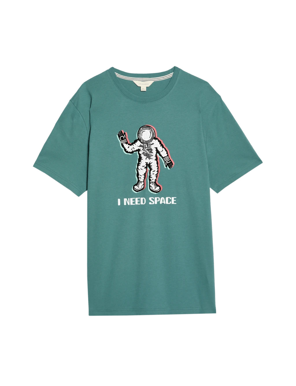 Relax in your own space with this pure cotton pyjama top. Comfy, regular-fit t-shirt style, with a classic crew neck and short sleeves. Astronaut graphic is finished with flocked detailing, and a ‘I need space’ slogan. M&S Collection: easy-to-wear wardrobe staples that combine classic and contemporary styles.