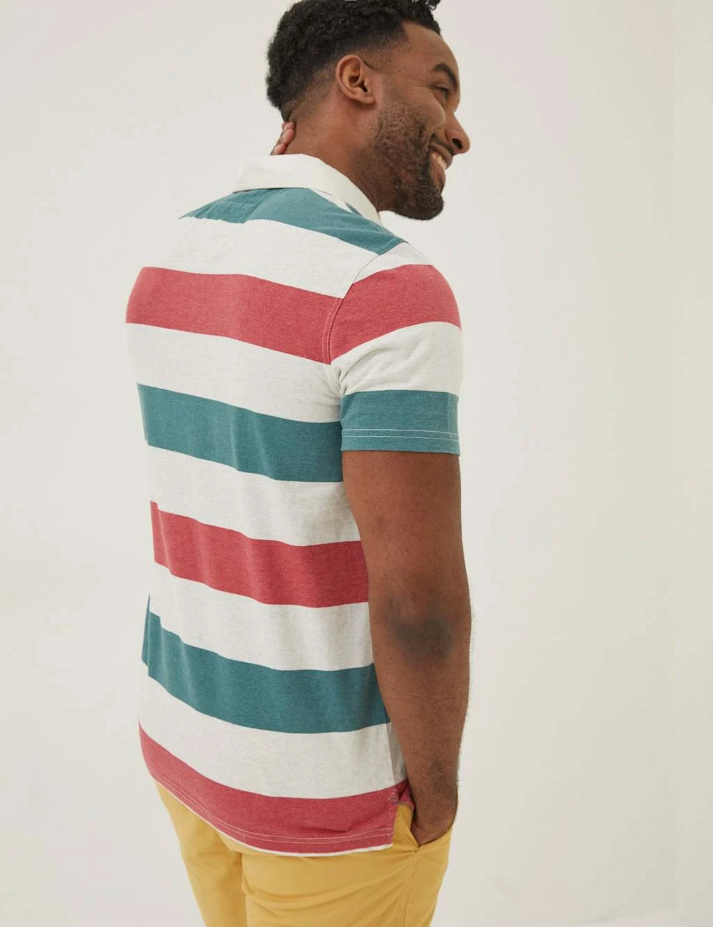 Block stripes give this pure cotton polo shirt from FatFace a timeless look. The piece is crafted in a regular fit for a comfortable feel, while breezy short sleeves offer a breathable effect. A neat collared neck with a concealed button placket gives a streamlined finish.