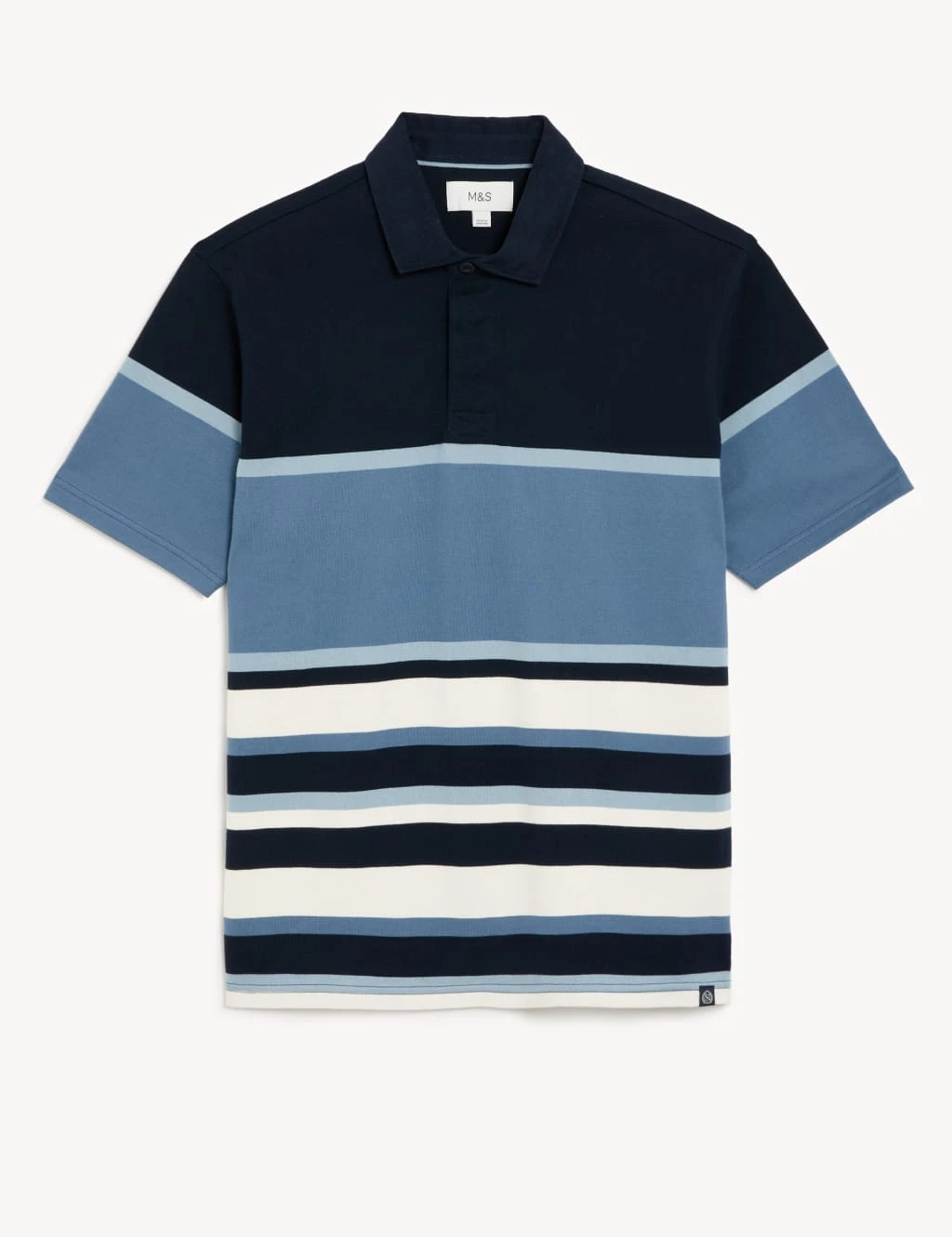 This pure cotton rugby shirt is a casual classic. Comfy regular fit with easy short sleeves and a collared neck. The multi-striped design gives it a strikingly stylish look.