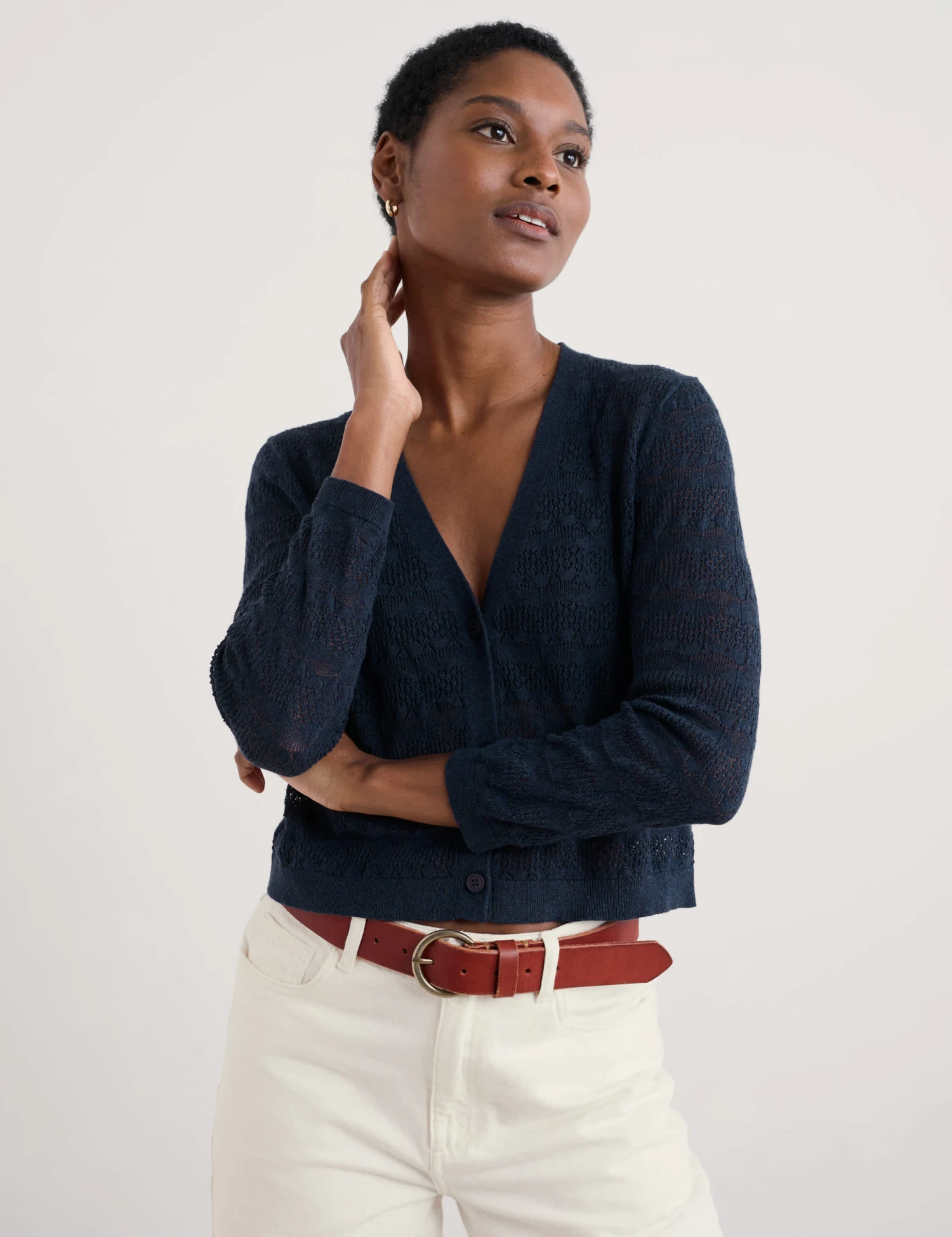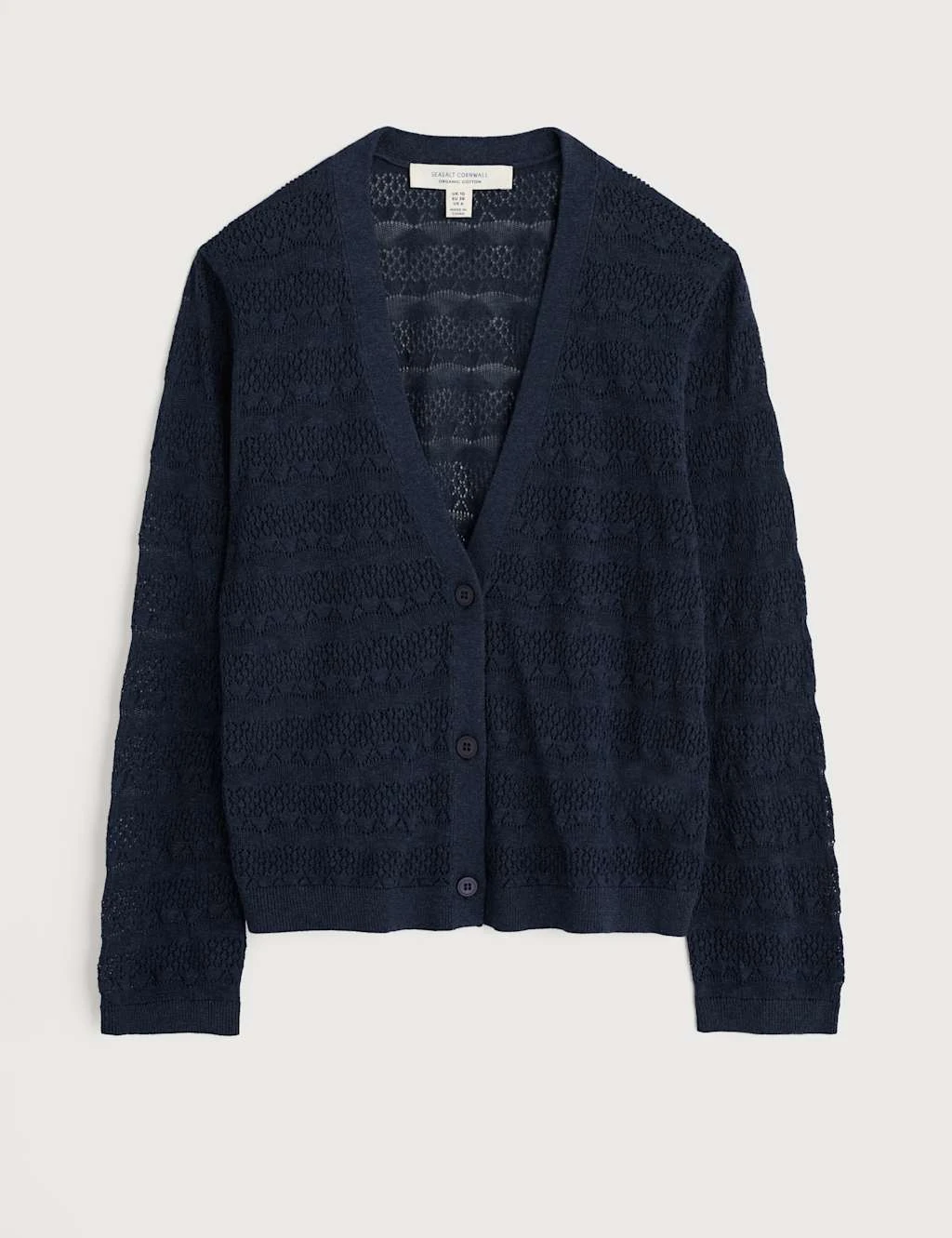 This pure cotton cardigan from Seasalt Cornwall is a pretty way to add an extra layer. It’s softy fitted and features a feminine v-neckline. The textured knit is complemented by ribbed trims and neat same-colour buttons down the front.