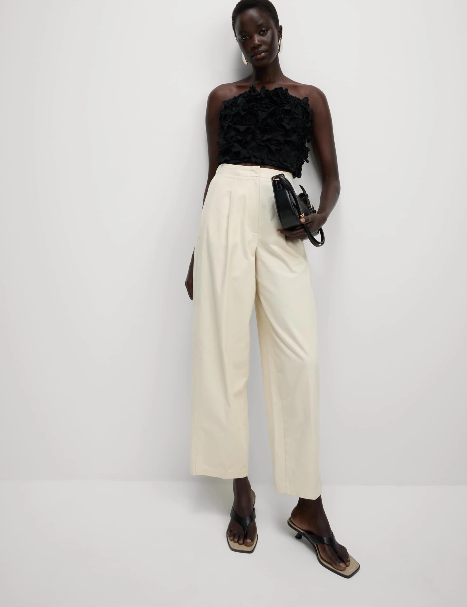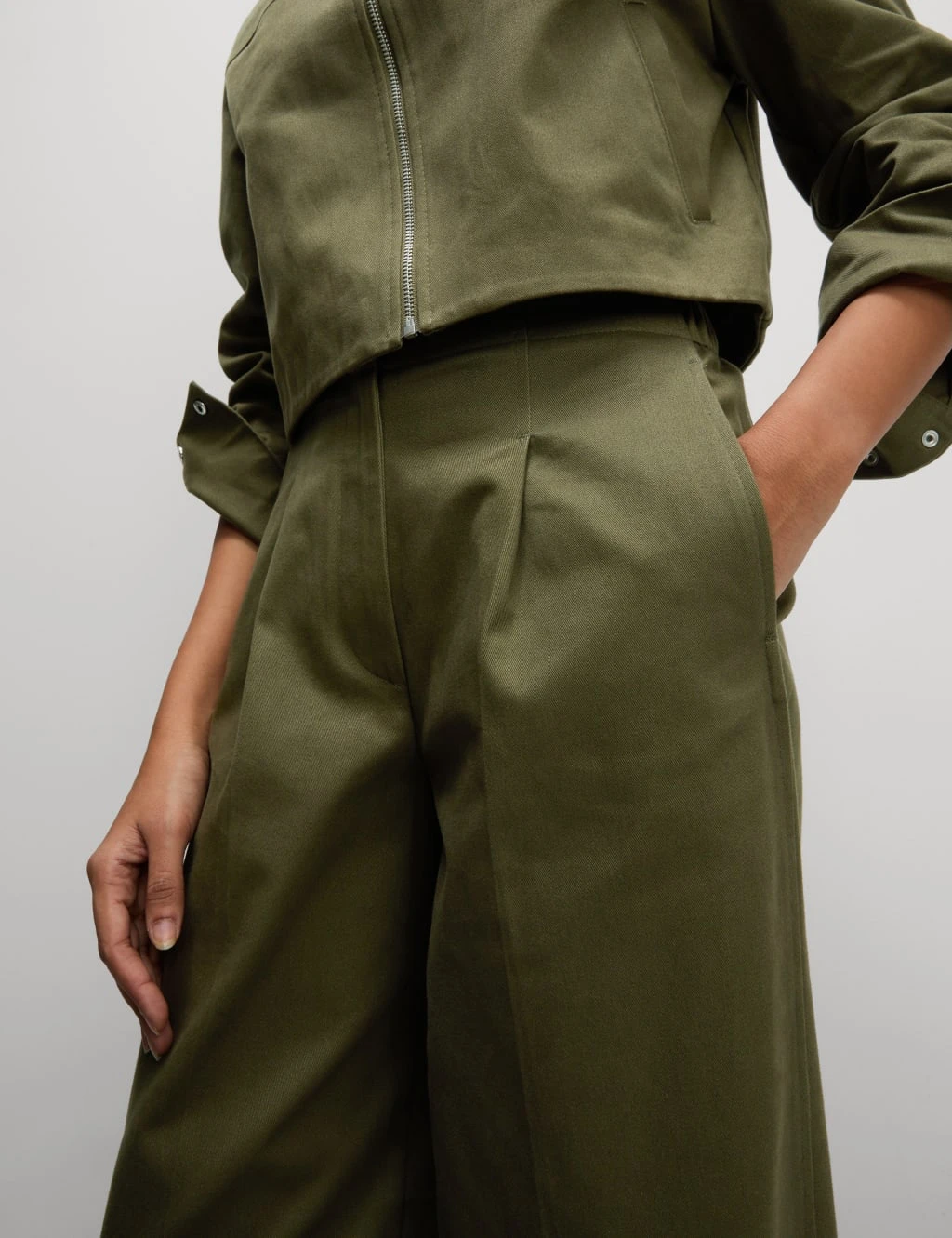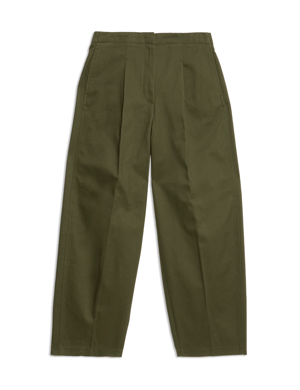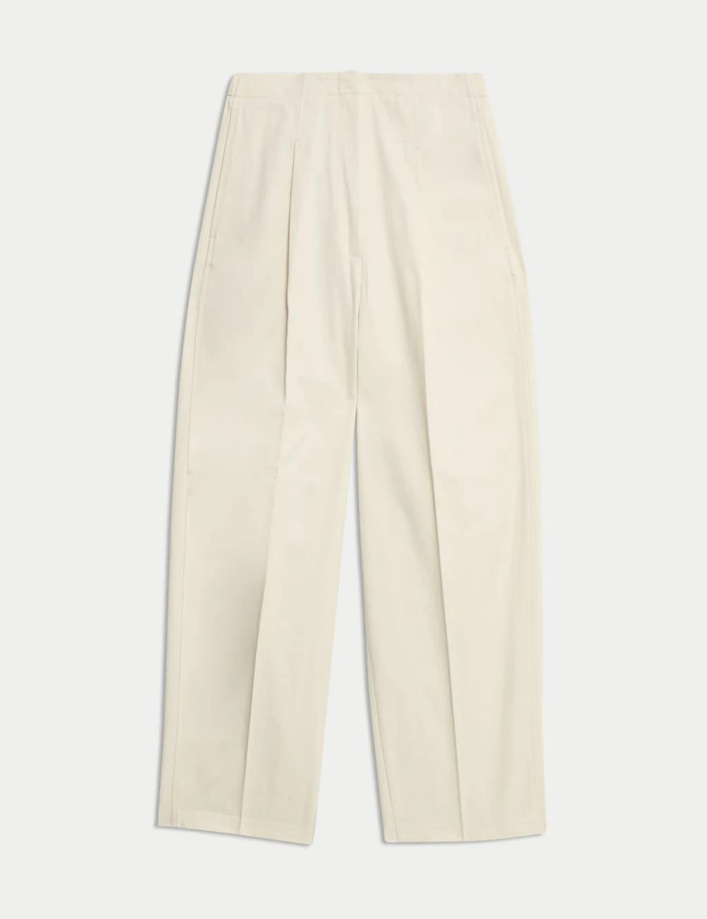 Crafted from pure cotton twill, these trousers have a soft hand feel and a smart look. Flattering high waist and barrel-leg shape for a fashionable appearance. Complete with two handy side pockets and a button-and-zip fastening. M&S Collection: easy-to-wear wardrobe staples that combine classic and contemporary styles.