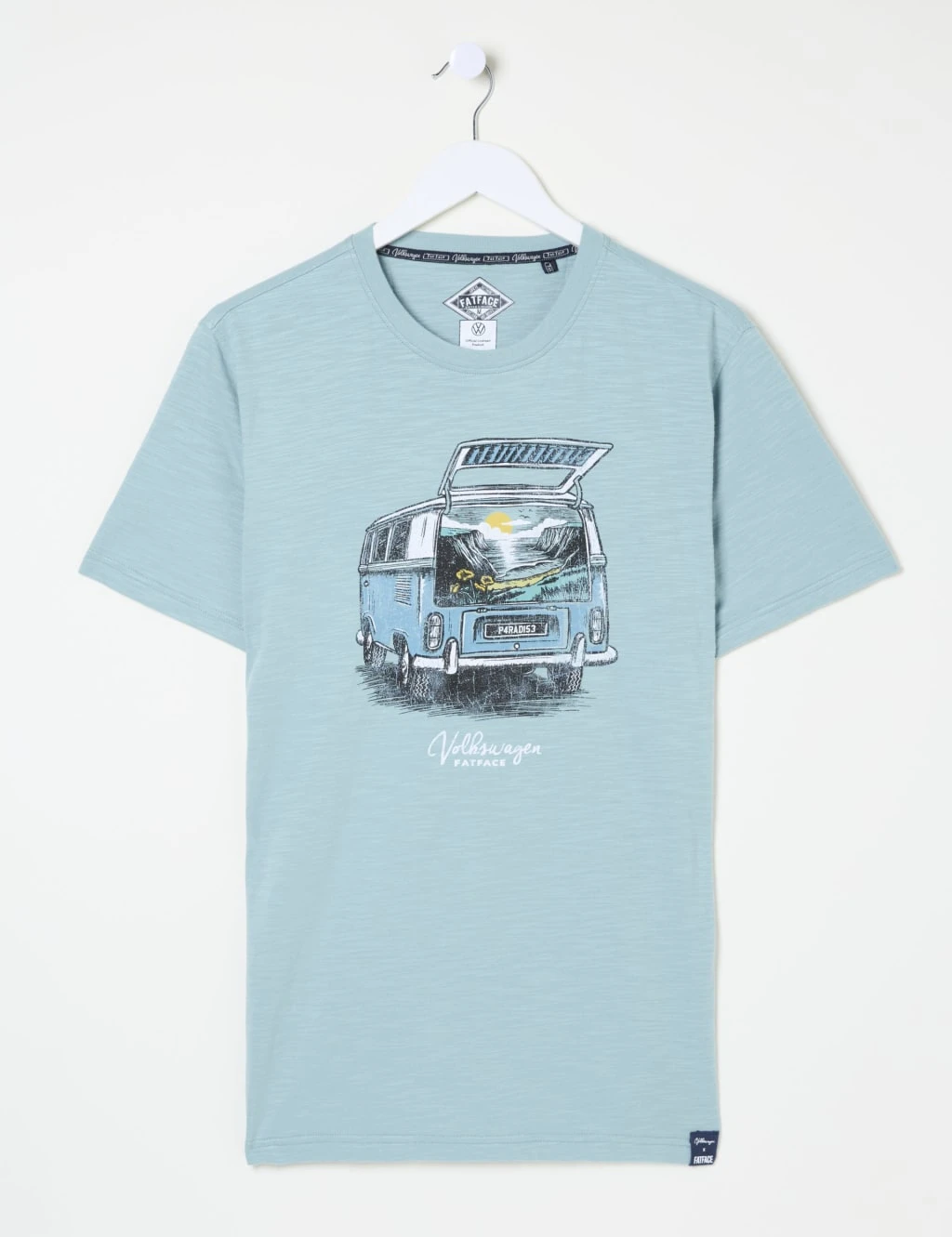 This pure cotton t-shirt from FatFace is perfect for fans of the iconic VW camper van. It’s made in an easy regular fit, with a timeless crew neckline and breezy short sleeves. The front graphic shows the classic vehicle against a scenic backdrop.