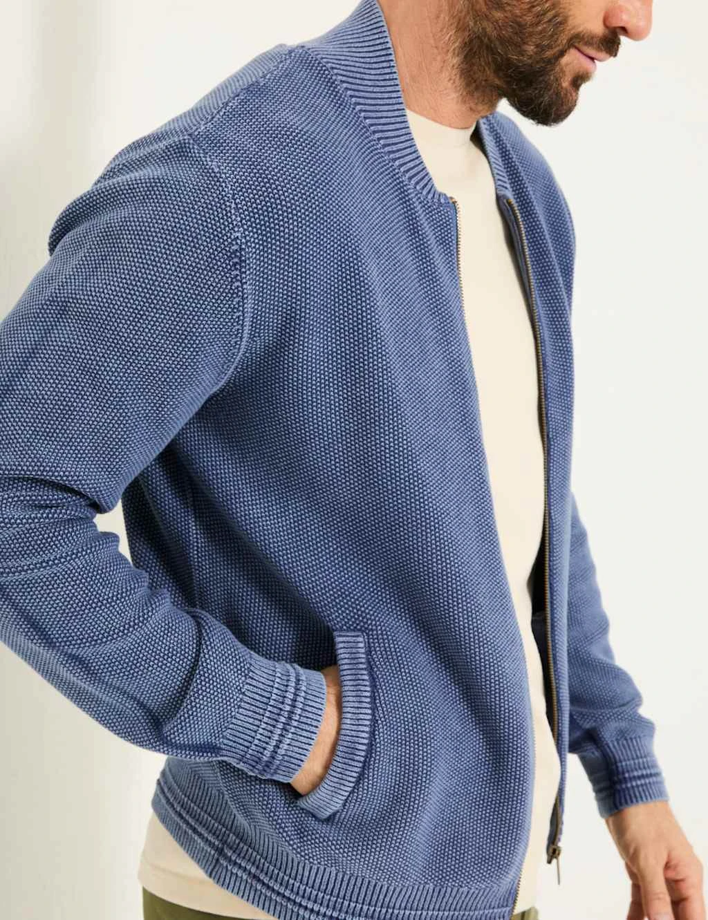 This knitted bomber from FatFace is a laid-back take on a classic cardigan. It’s made from breathable pure cotton with a stylish textured knit and an authentic washed finish. The zip-through design allows for versatile wear, while the rib-knit collar, cuffs and hem add a touch of structure. Two side pockets complete the timeless look.