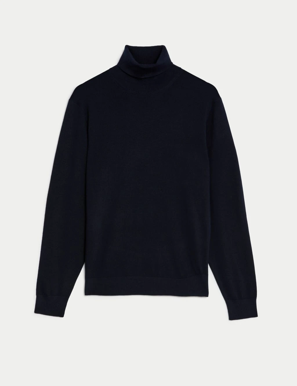 Enjoy the luxuriously soft feel of this extra fine merino wool jumper from our Autograph range. It comes in a timeless roll neck shape, with snug ribbed trims. It’s easy to clean, too – simply pop it in the washing machine and tumble dry. Autograph: premium investment pieces featuring contemporary cuts and refined finishing touches.