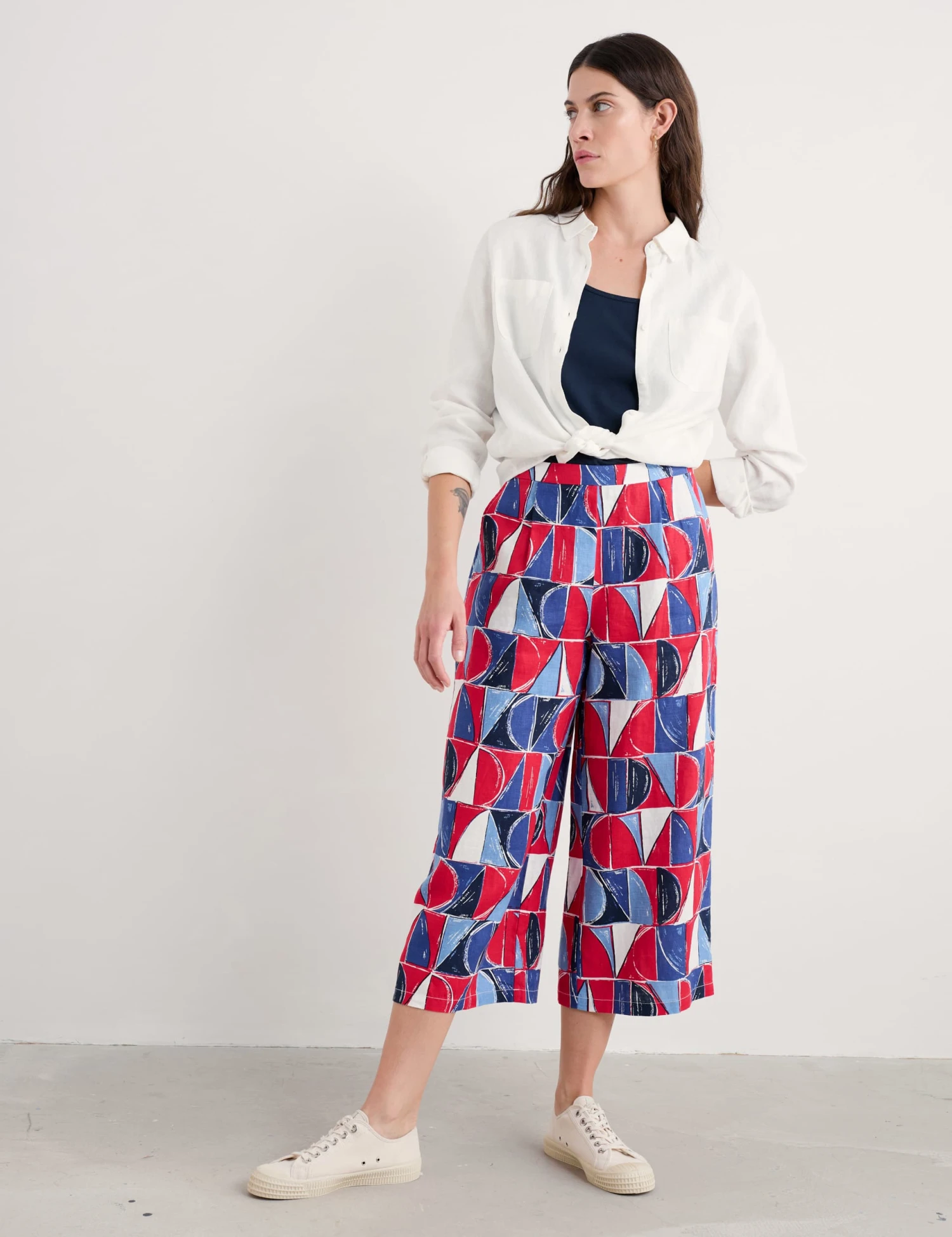 With their vibrant geometric print, these pure linen culottes from Seasalt Cornwall are a playful choice. They’re made in a flttering wide-leg shape, with a comfy mid-rise waistline. A side zip fastening ensures a smooth look at the front.