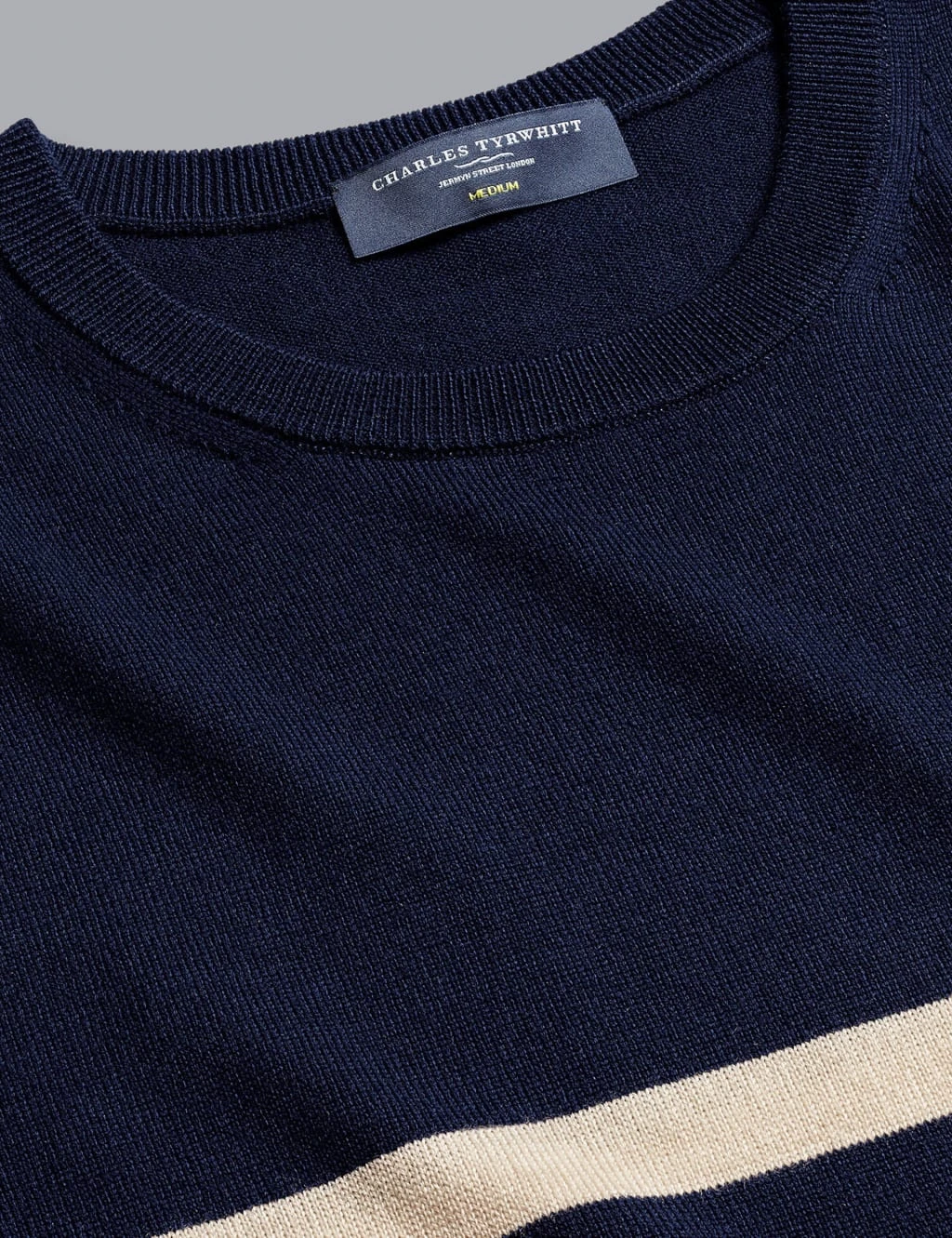 Made from pure Woolmark-certified merino wool, this Charles Tyrwhitt jumper is warm, breathable and luxurious. It features a classic crew neck shape with ribbed trims for a neat finish. The striped design will give your knitwear collection a nautical-inspired update.