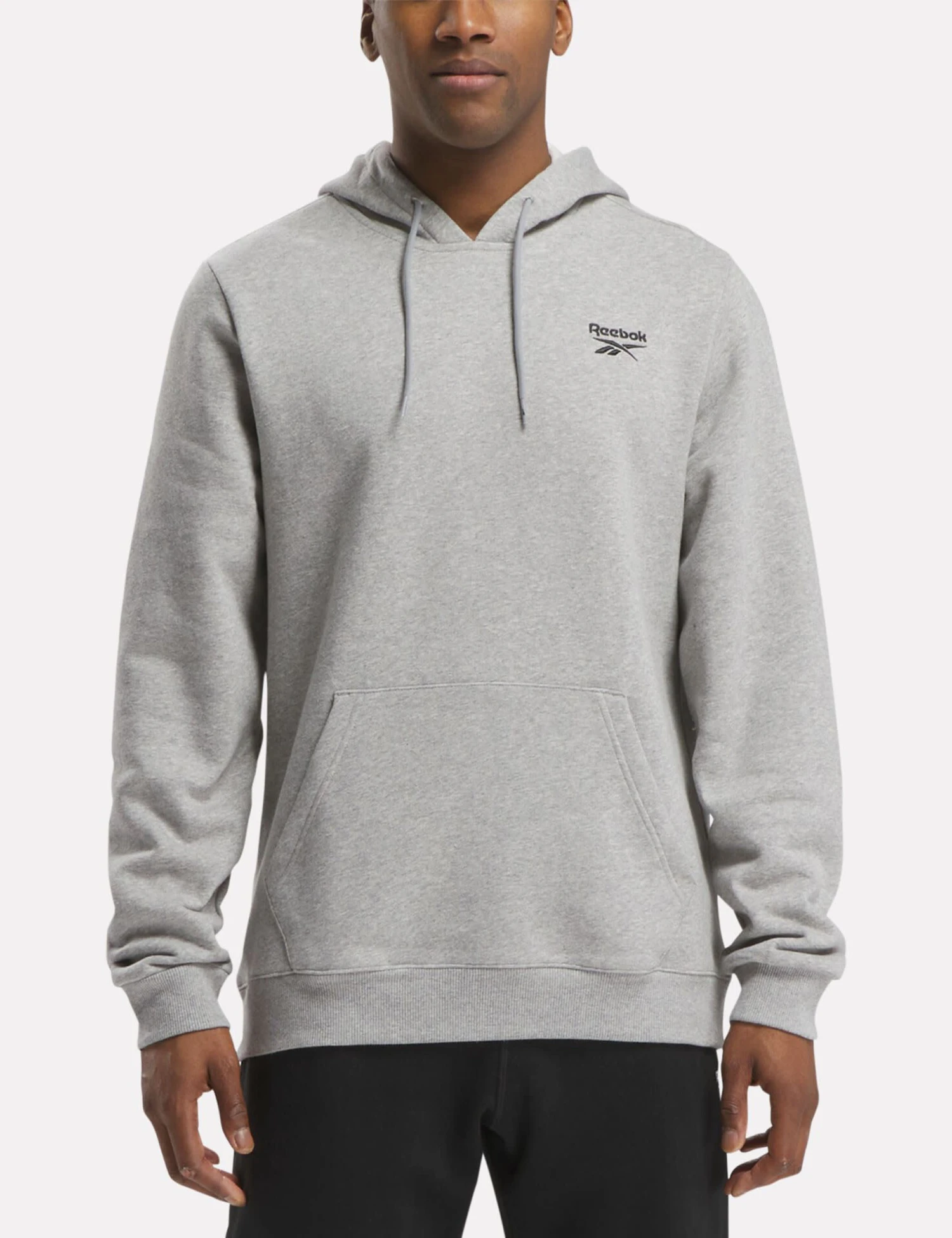 With its easy overhead style and soft cotton-rich fleece fabric, this Reebok hoodie deserves a spot in your workout kit. It’s made in a regular fit for throw-on-and-go appeal, with an adjustable drawstring hood to keep you warm. This hoodie also features neat ribbed trims and a large kangaroo pocket, plus a small embroidered Reebok logo on the chest.