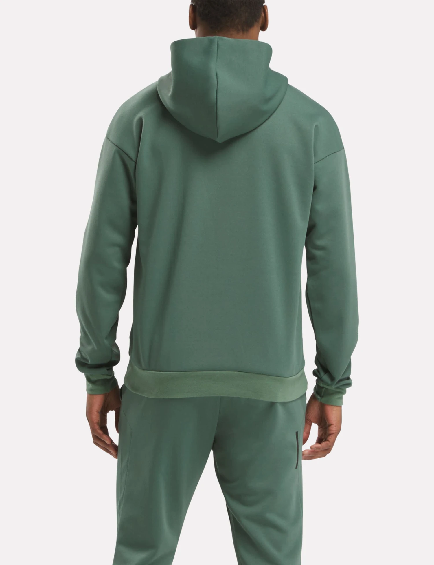 Layer up for cold weather training in the Strength hoodie from Reebok. It’s made im a comfy regular fit. A kangaroo pocket at the front provides useful storage, while ribbed trims at the cuffs and hem ensure a neat silhouette. On the chest, the brand’s iconic logo appears.