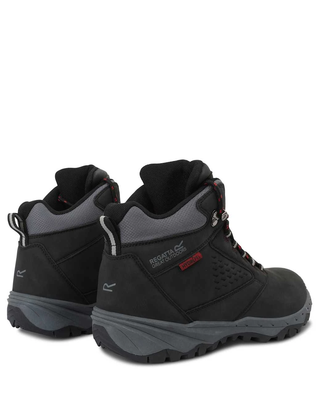Stay dry and comfortable on any hike with the Amble walking boots from Regatta. They feature a faux leather upper enhanced with Hydropel water-resistance technology. TECFOAM insoles provide exceptional support for all-day comfort, while a lightweight yet hardwearing moulded outsole delivers reliable grip and stability on any terrain. The boots fasten with classic, heavy-duty hiking boot laces, ensuring a secure and customised fit.