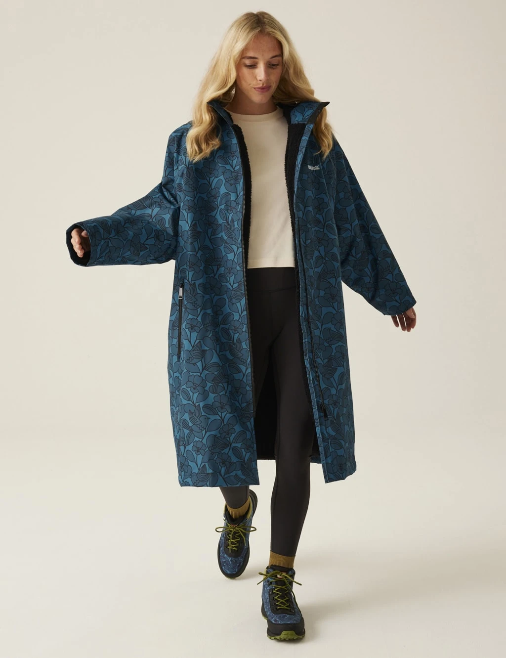 Stay cosy between dips with this waterproof zip-up changing robe from Regatta. It’s made in a comfy regular fit, to a generous longline design with a hood for added coverage. A fleece lining ensures warmth. Pockets at the hips keep your hands snug, plus there’s an internal pocket to stow small valuables. This piece comes complete with an eye-catching floral geometric print designed by Orla Kiely.