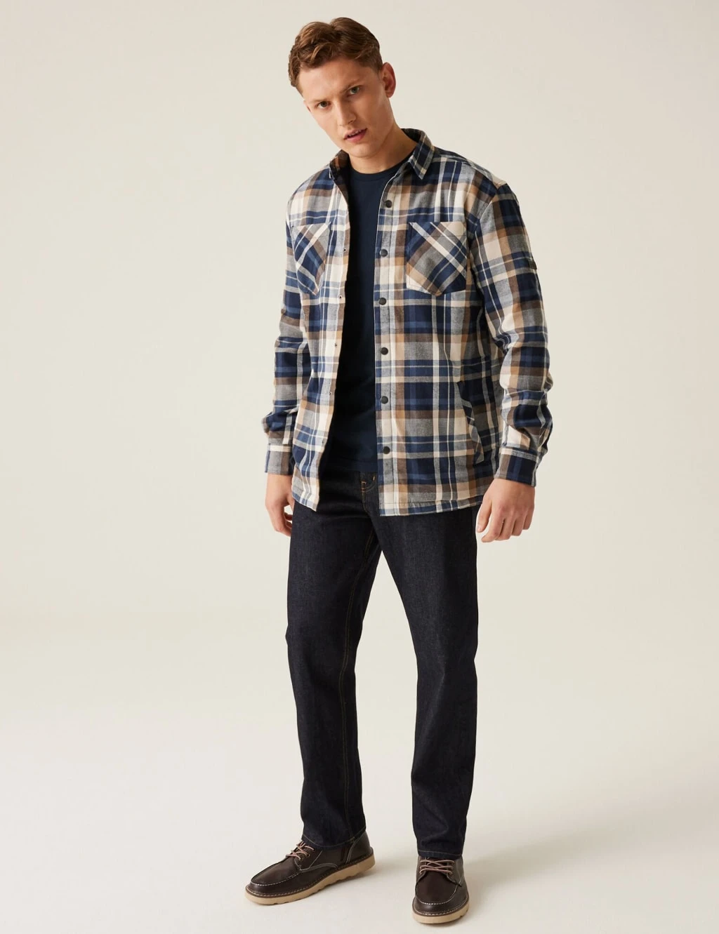 Embrace smart-casual outerwear with this lined, cotton-blend flannel shirt from Regatta. This regular-fit style is crafted from stylish check fabric with a warm brushed finish. It has a neat collar and branded poppers, plus two patch pockets on the chest for a utility-inspired feel. Two side entry pockets are the ideal spot to warm your hands.