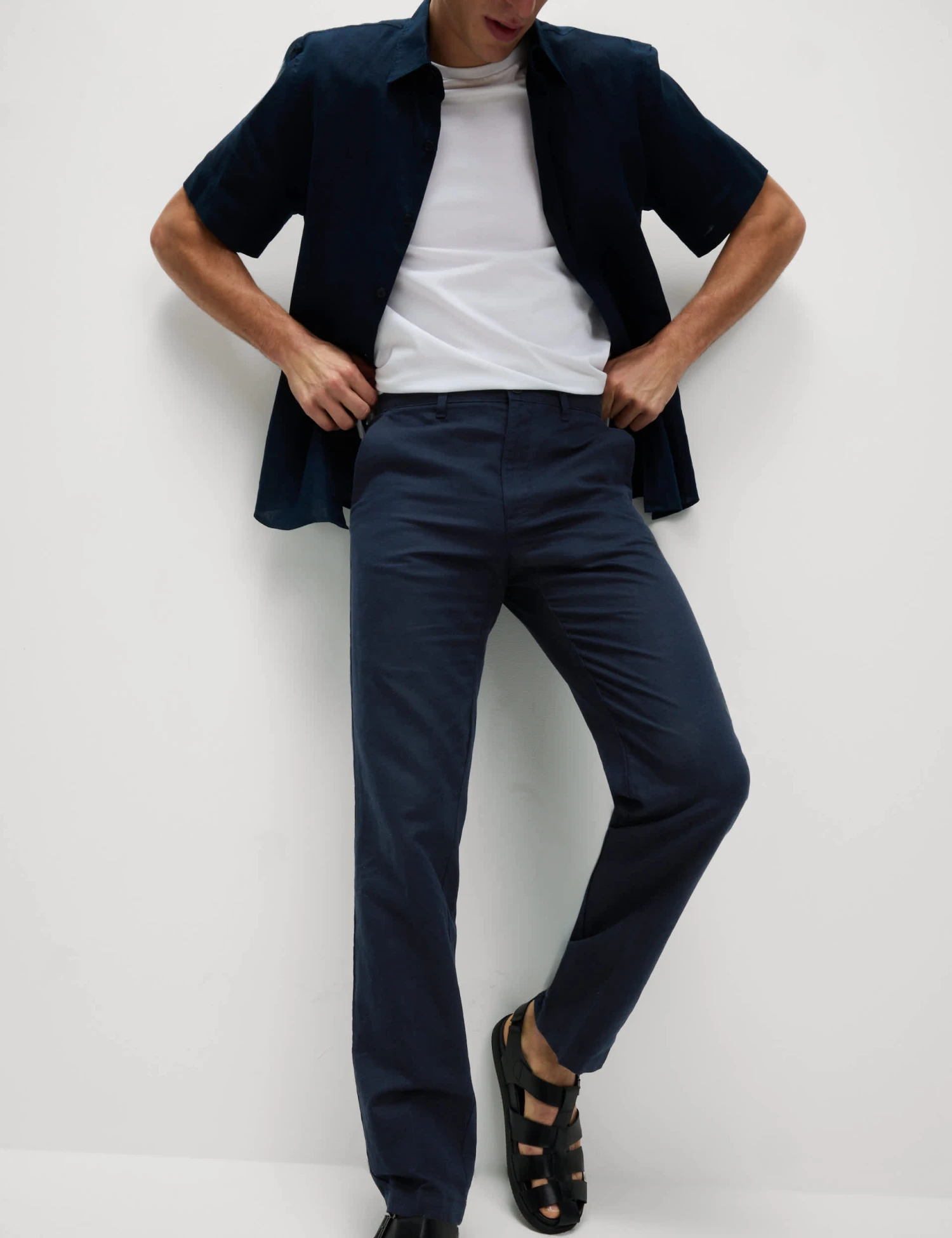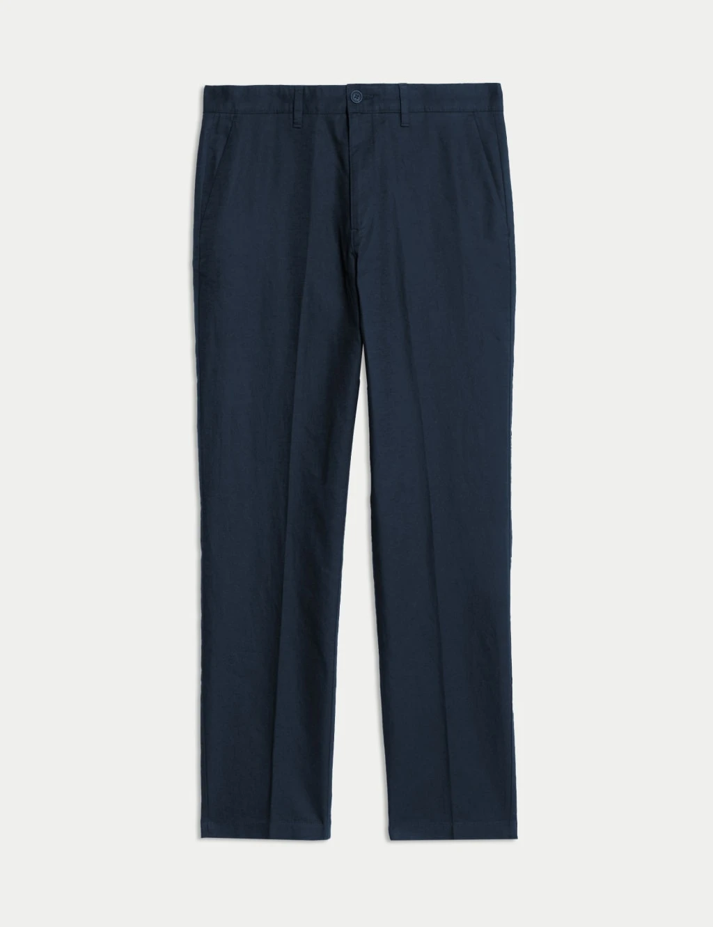 Walk out in warmer weather in style with these lightweight breathable cotton and linen-blend chinos. They’re cut in a roomy regular fit. Neat button and zip fastening, plus belt loops. Side pockets keep your essentials close to hand. M&S Collection: easy-to-wear wardrobe staples that combine classic and contemporary styles.