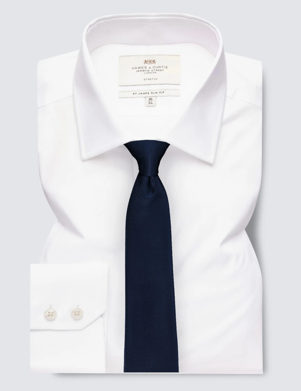 Crafted from cotton, this crisp shirt from Hawes & Curtis is a timeless addition to your wardrobe. It’s cut in a regular fit from stretch fabric that flexes with you for comfort. Neat double-button cuffs and a classic collar complete the dapper design. With its easy-iron finish, it only requires a quick press before wearing.