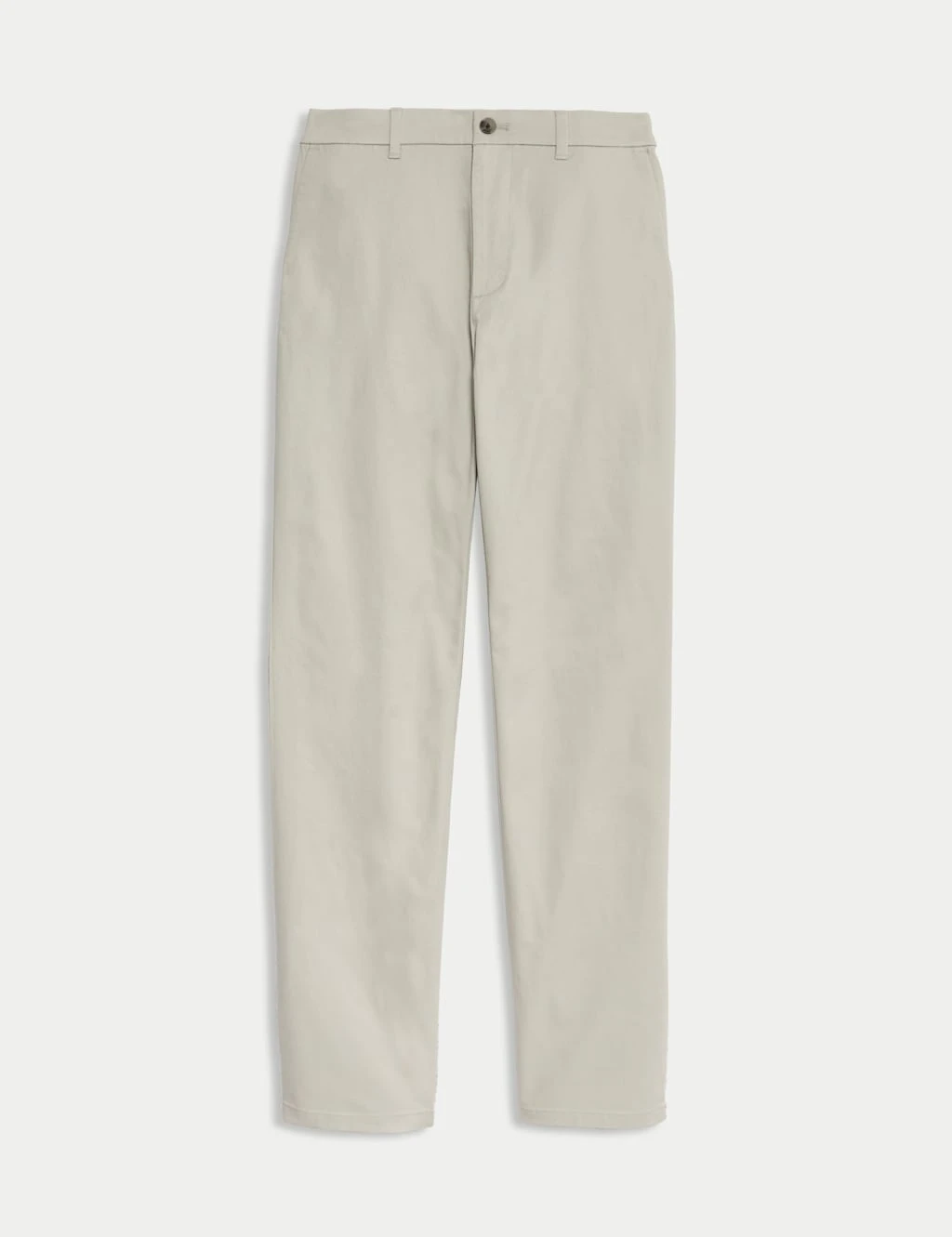 Look smart and feel great in these soft and breathable cotton-rich chinos. Made to a regular fit with a streamlined flat front. Added stretch in the fabric ensures easy movement and the elasticated waist provides extra comfort. Jetted side pockets and button-up back pockets keep your essentials secure. M&S Collection: easy-to-wear wardrobe staples that combine classic and contemporary styles.