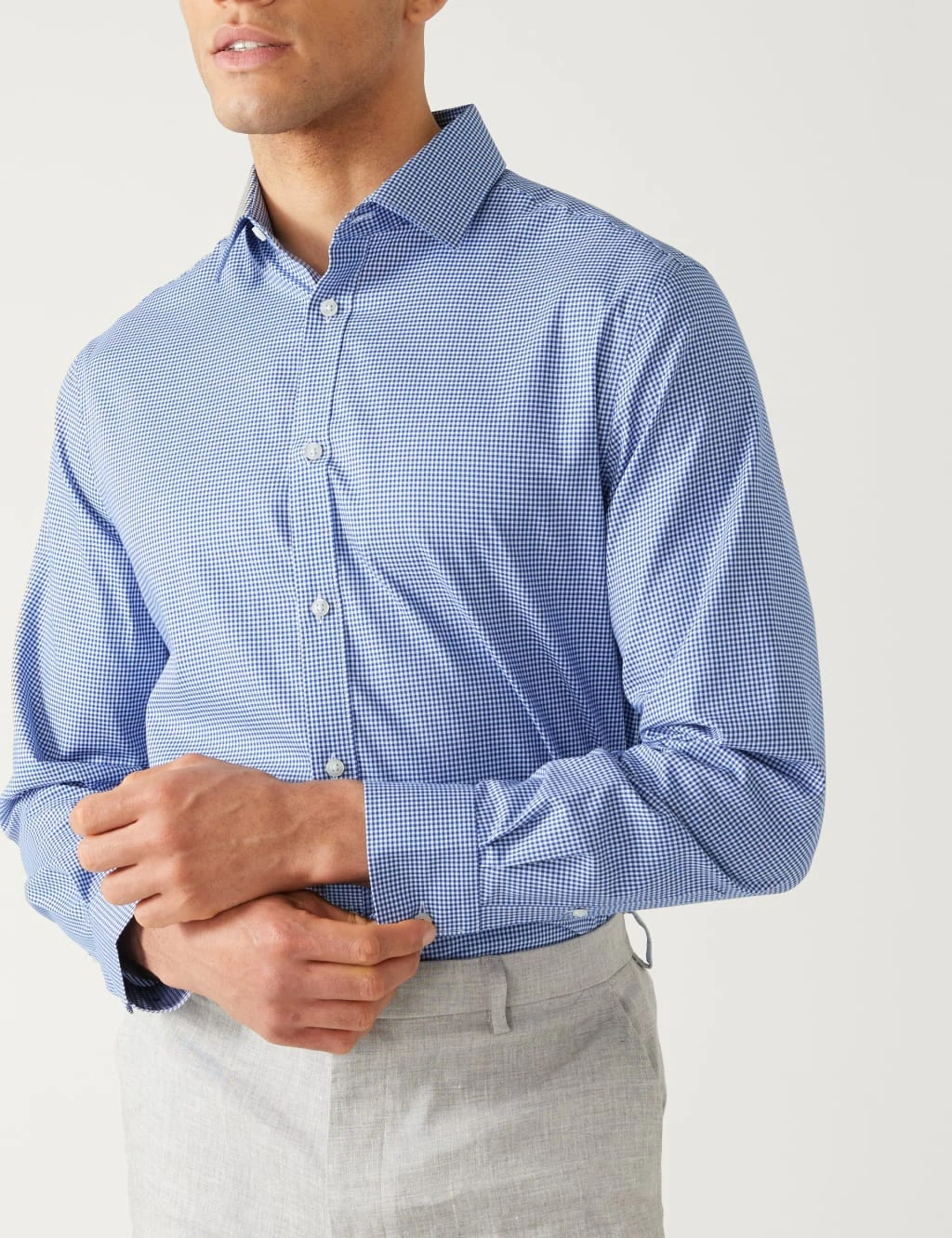 Crafted from breathable pure cotton shirt with a gingham pattern, this shirt will add a suave look to refined outfits. It’s made in a classic regular fit for comfortable wear and features long sleeves. The non-iron finish makes laundering a breeze.