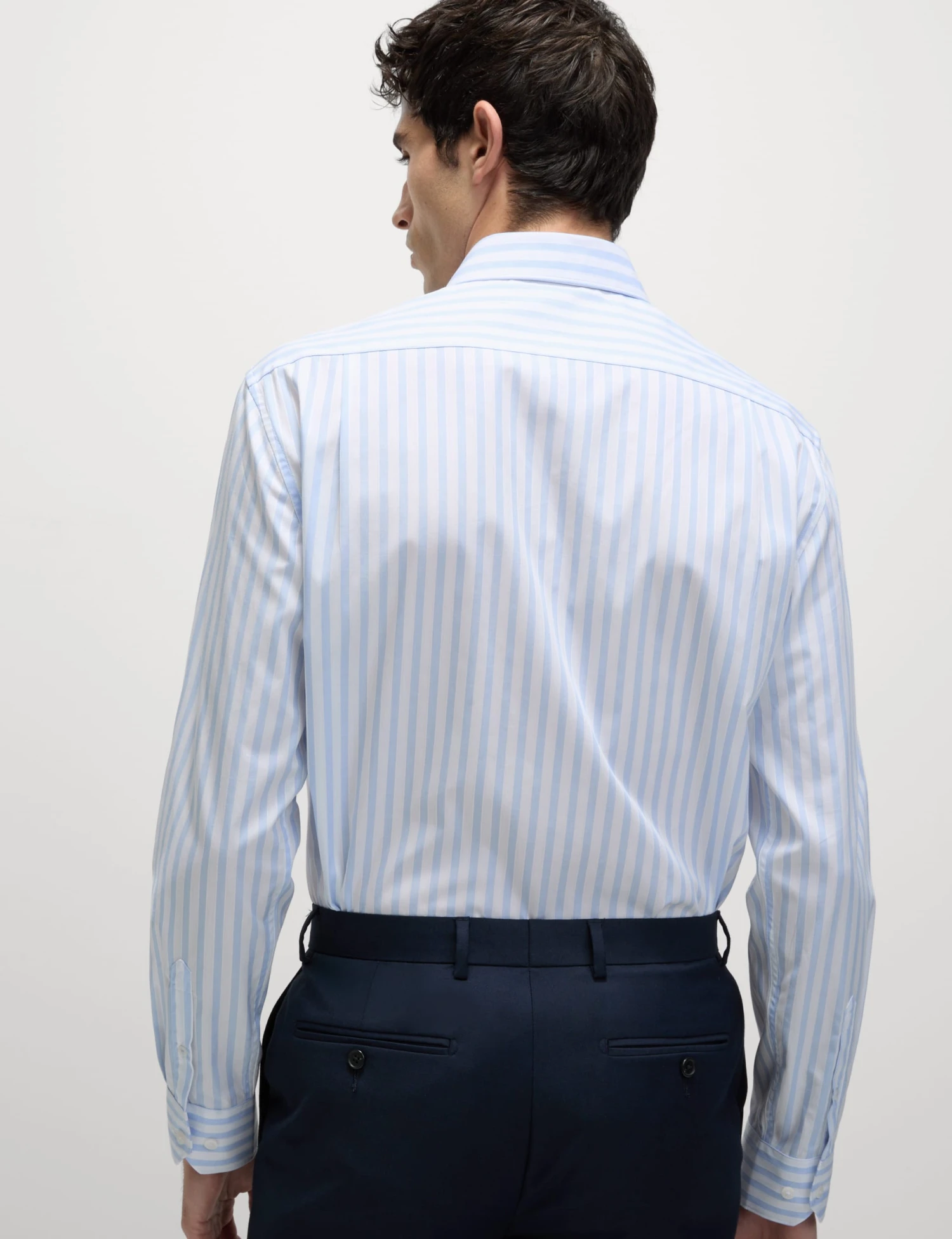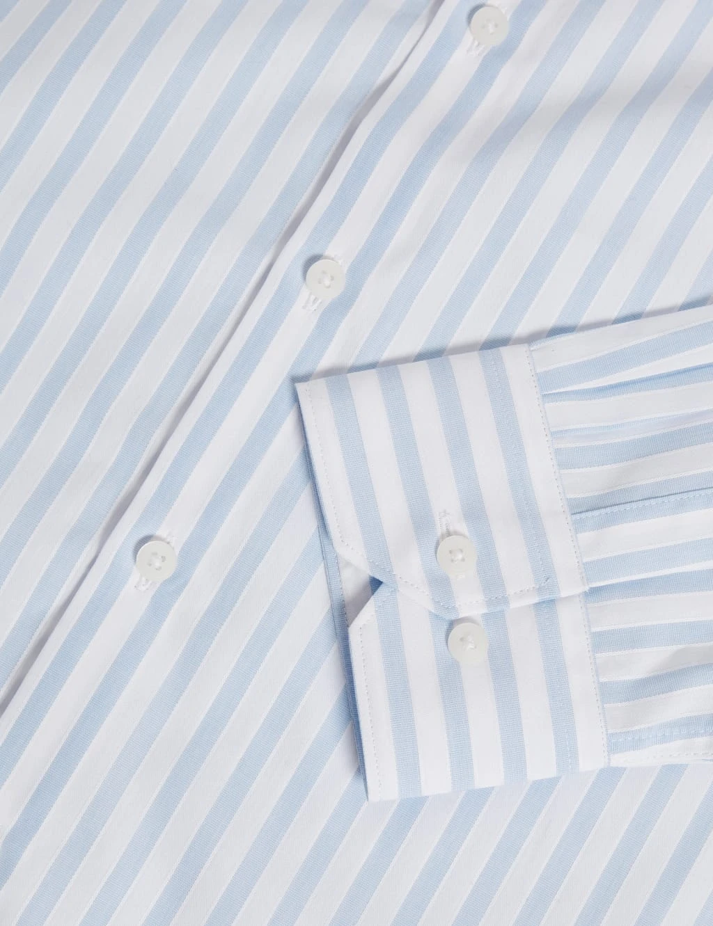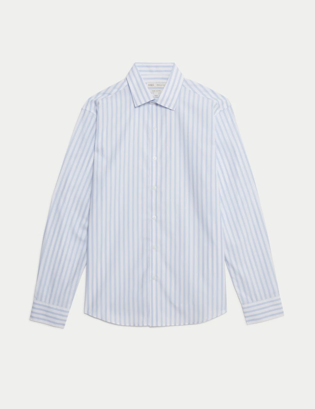A smart workwear staple, this shirt is made from pure cotton for natural comfort and breathability. It’s cut in a regular fit with long sleeves and a classic collar for a classic look. The crisp vertical stripes add sharp detail, while the easy-to-iron finish means it needs just a quick press to keep it looking neat.M&S Collection: easy-to-wear wardrobe staples that combine classic and contemporary styles.